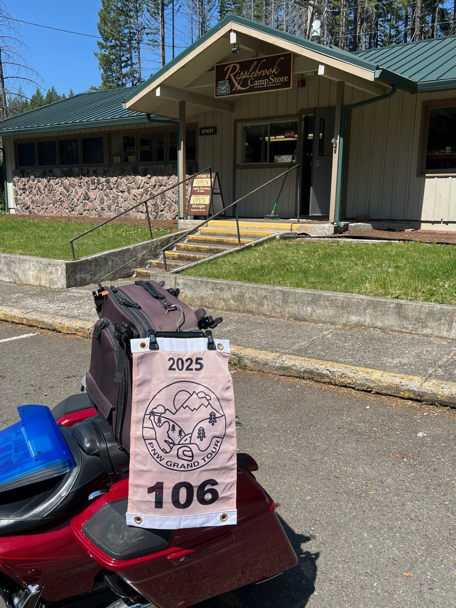 Take a picture of the Ripplebrook Store with your bike and rally flag in the picture.