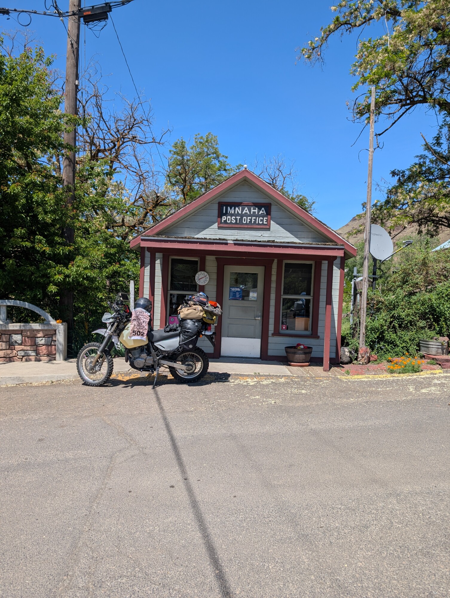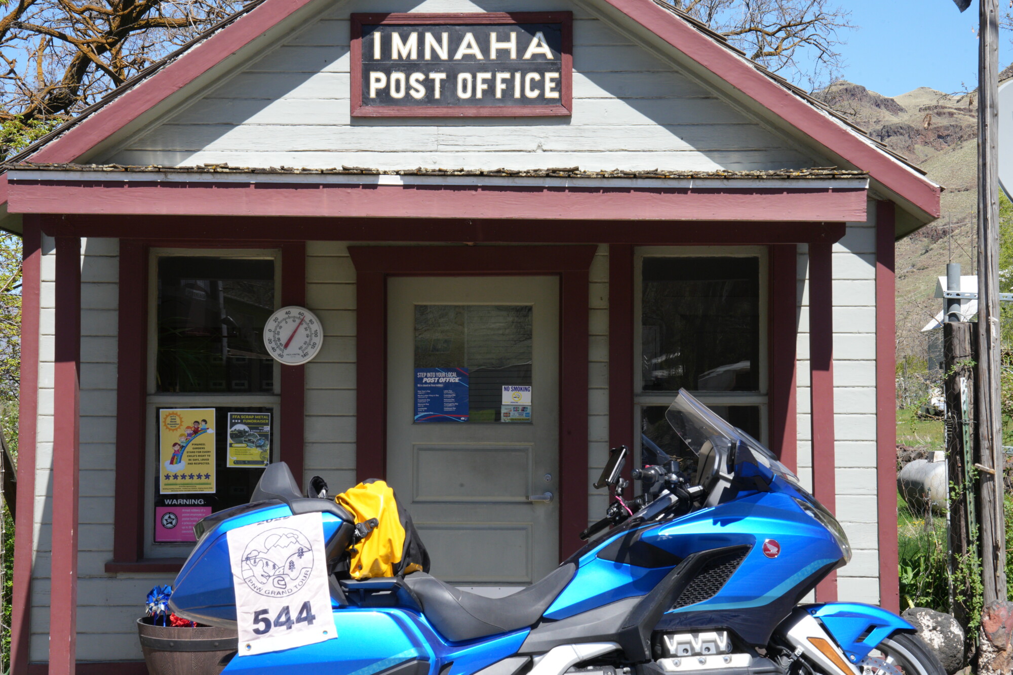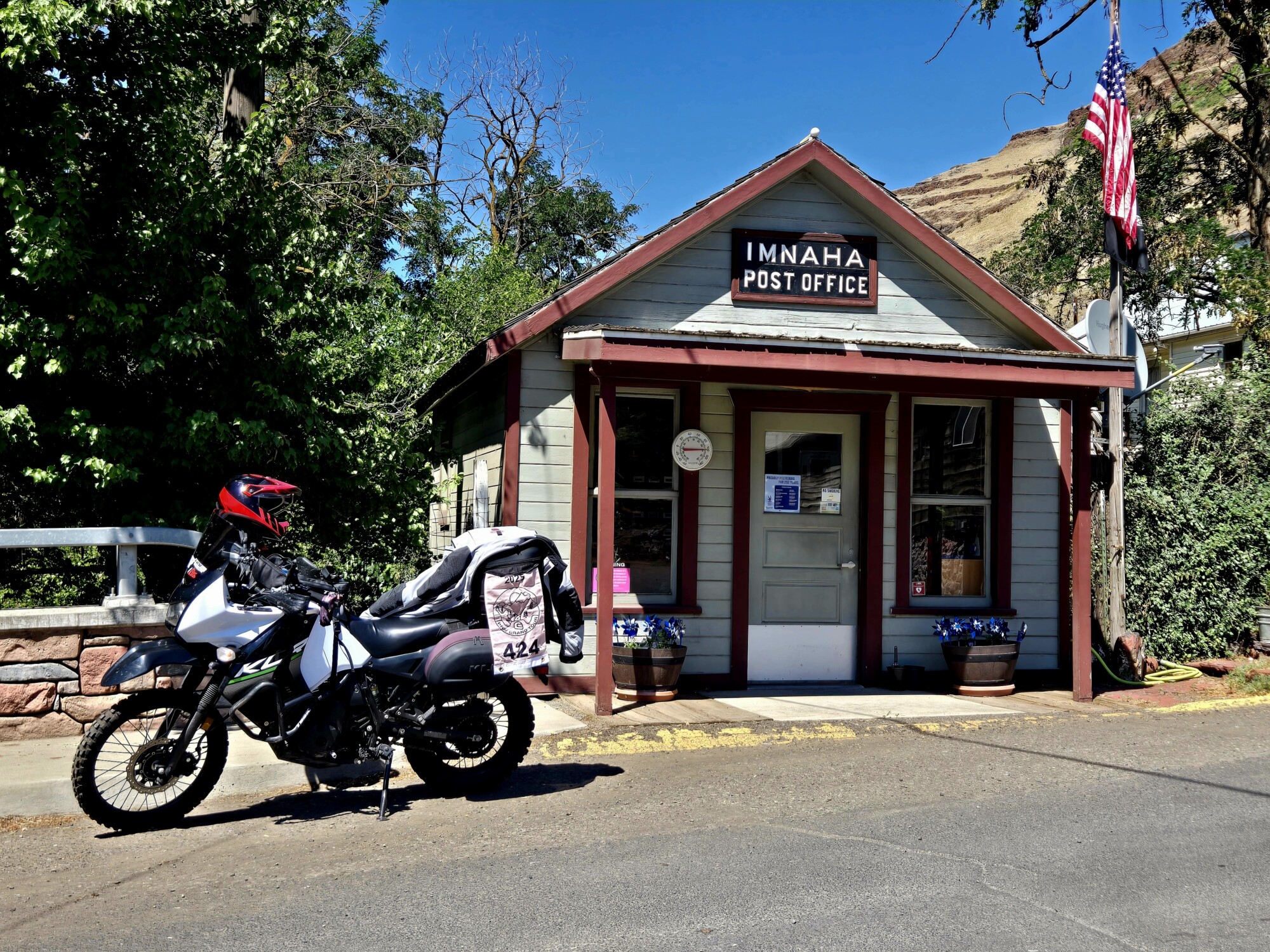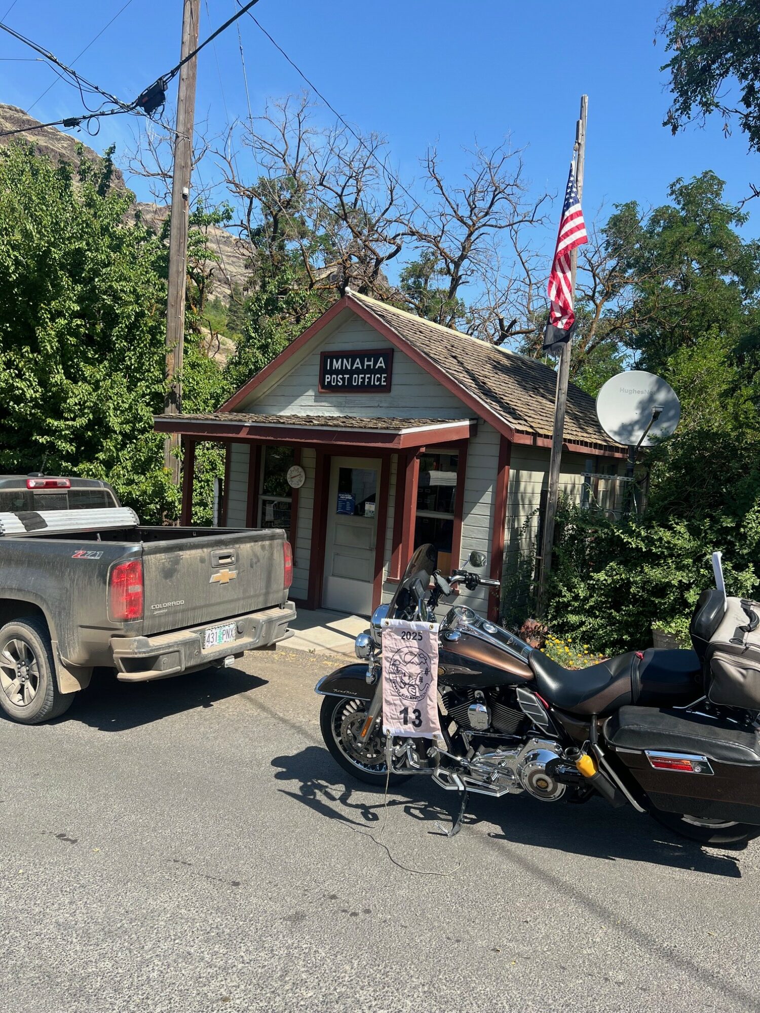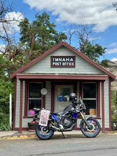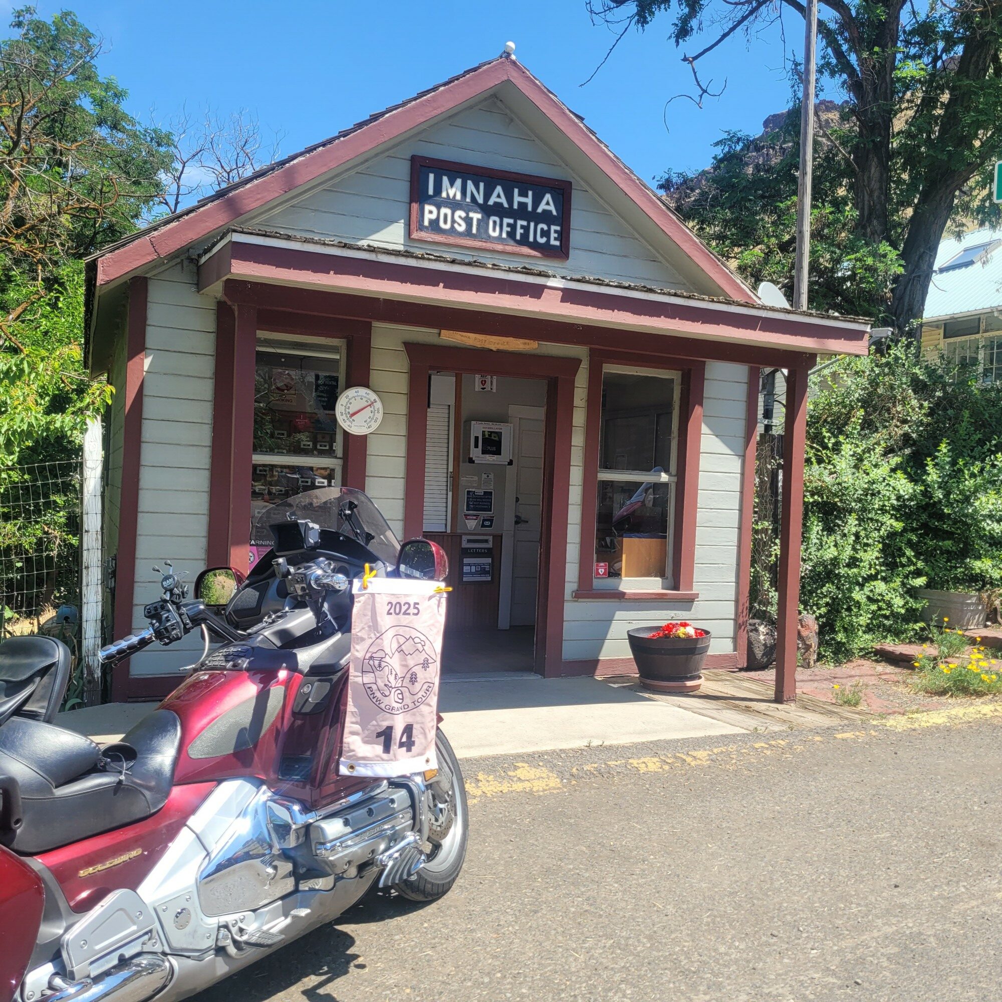 Take a picture of the Imnaha Post Office with your bike and flag in the picture.