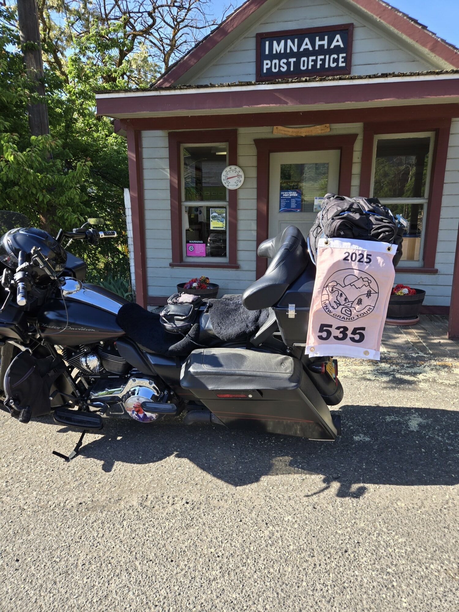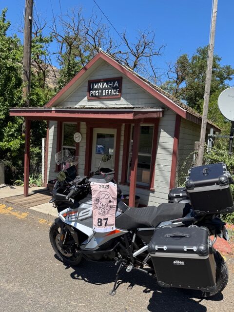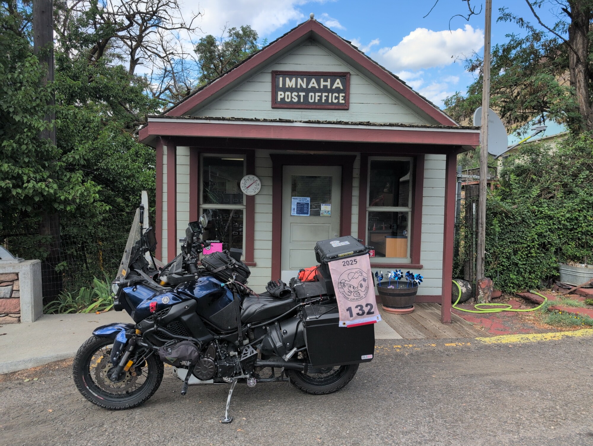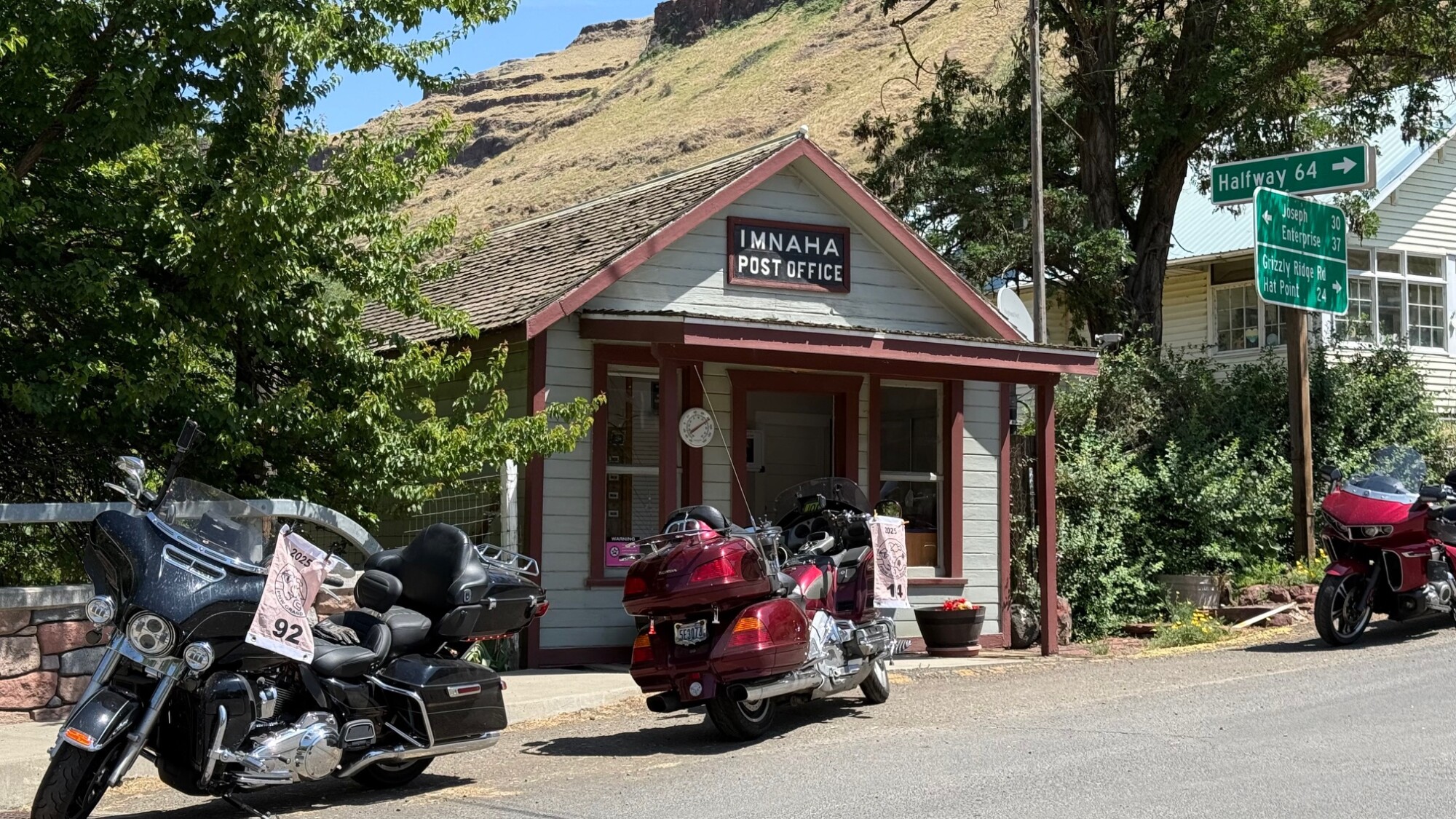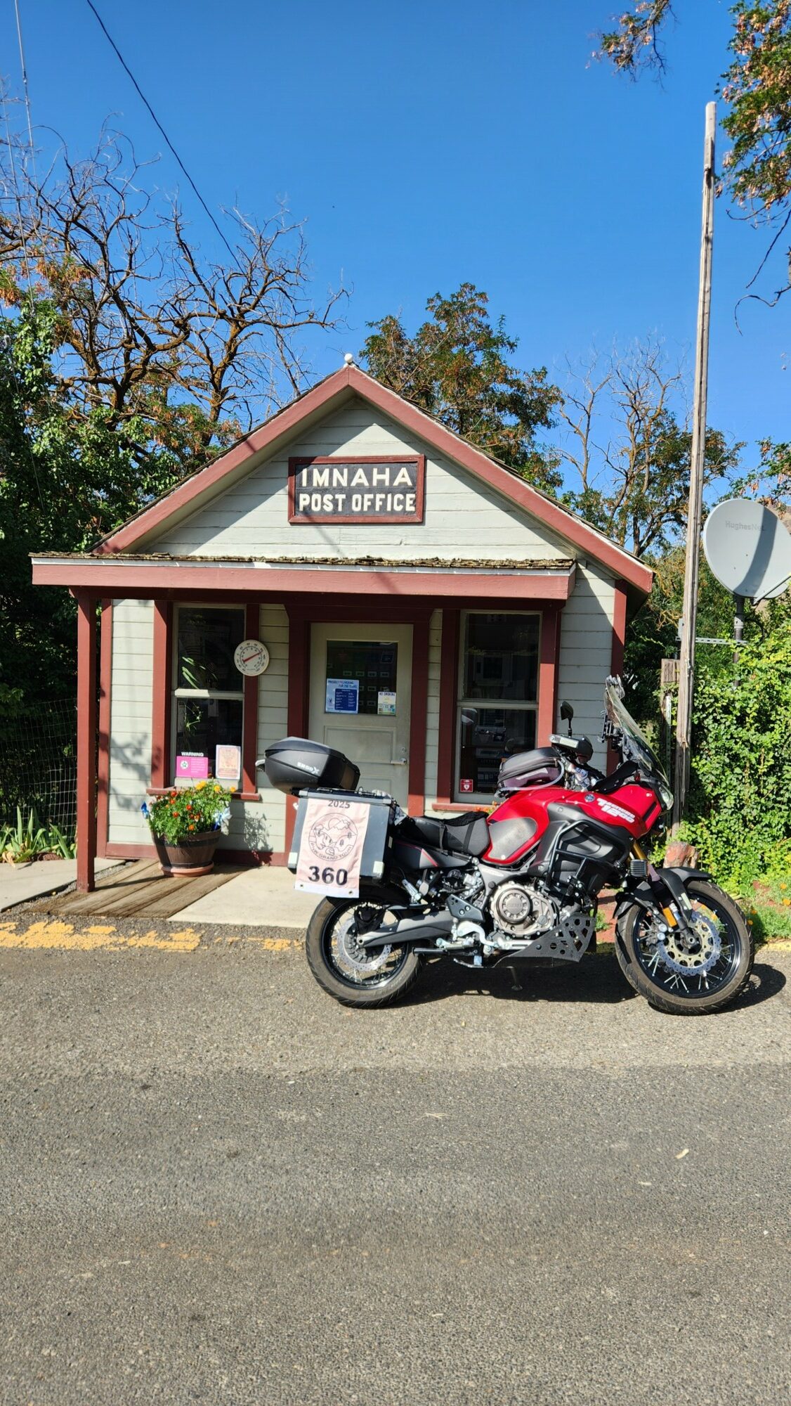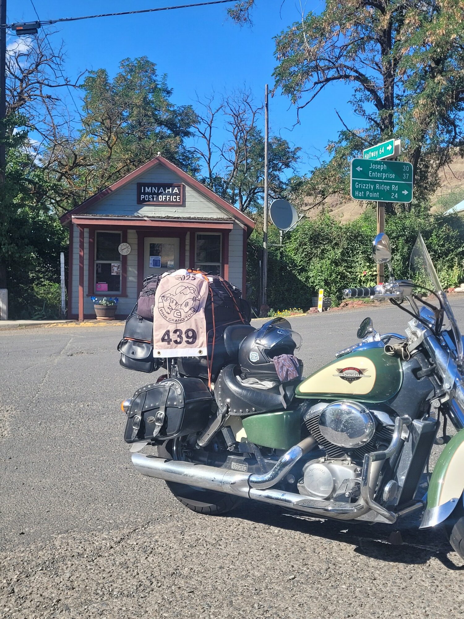 Take a picture of the Imnaha Post Office with your bike and flag in the picture.