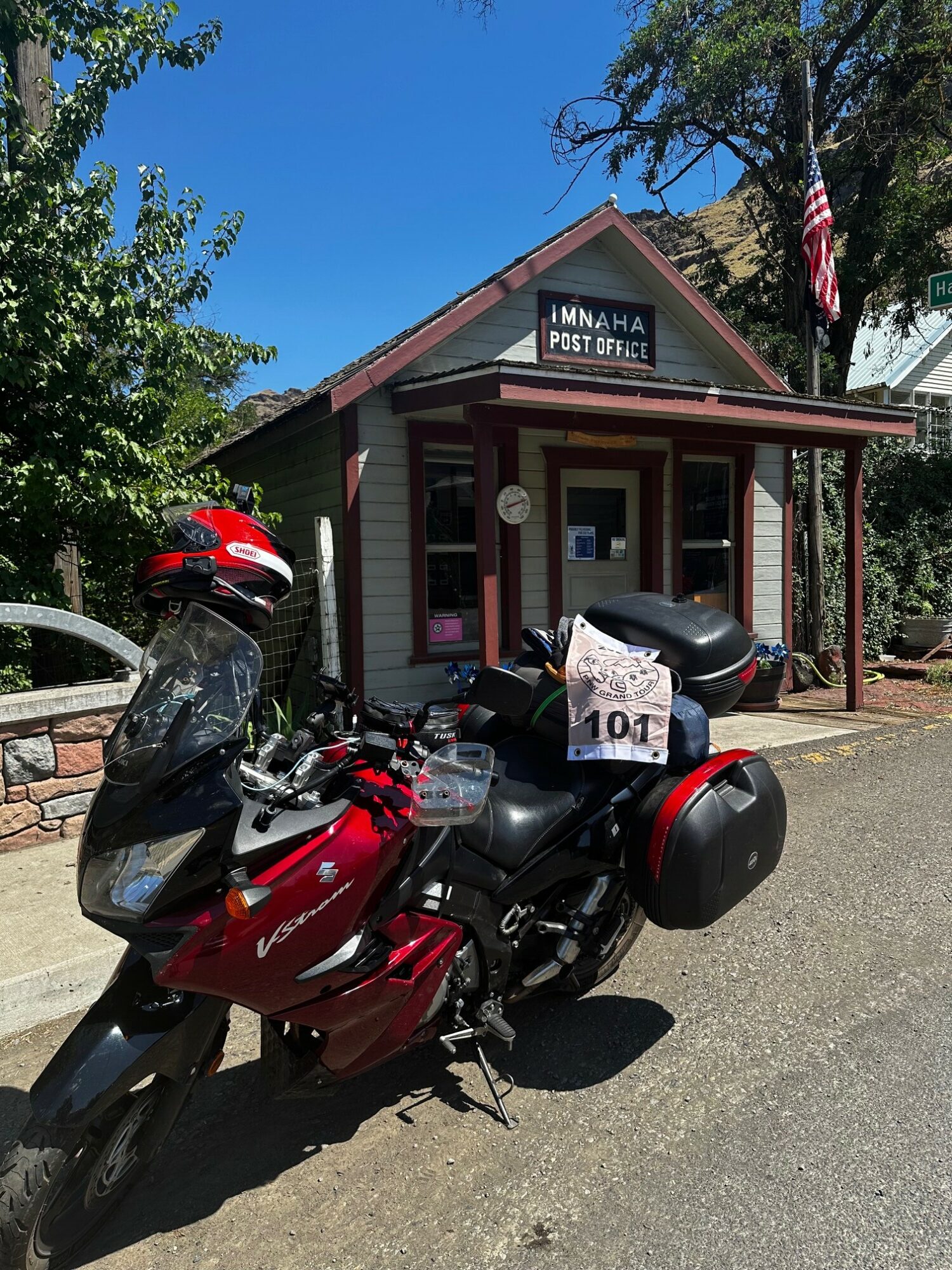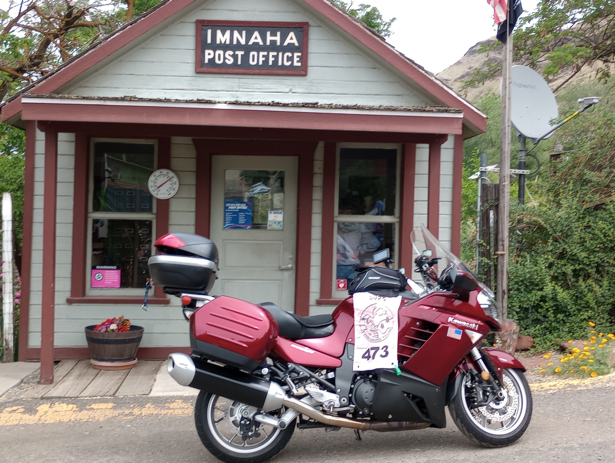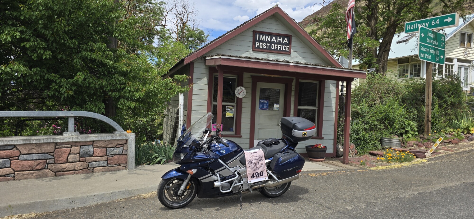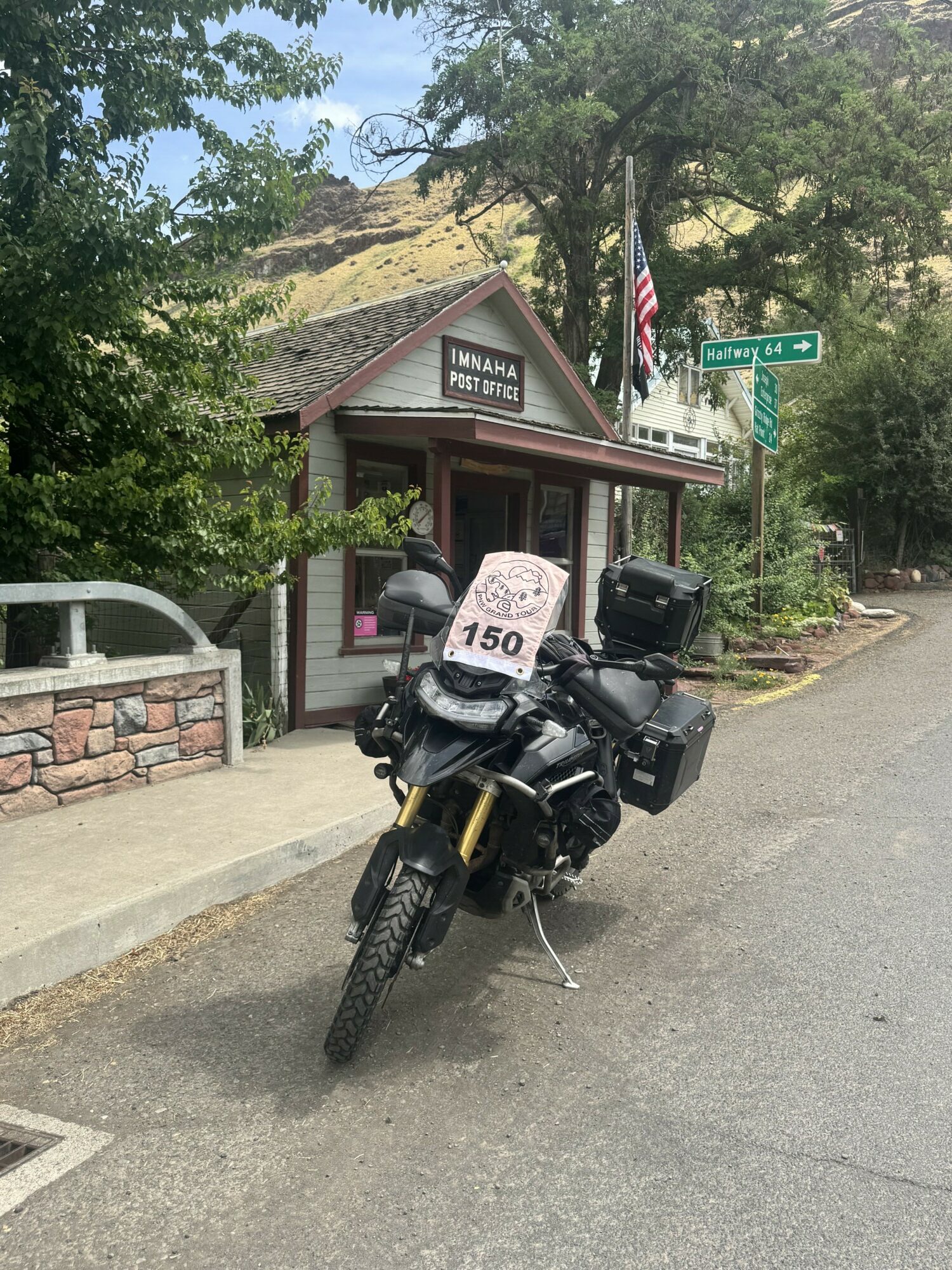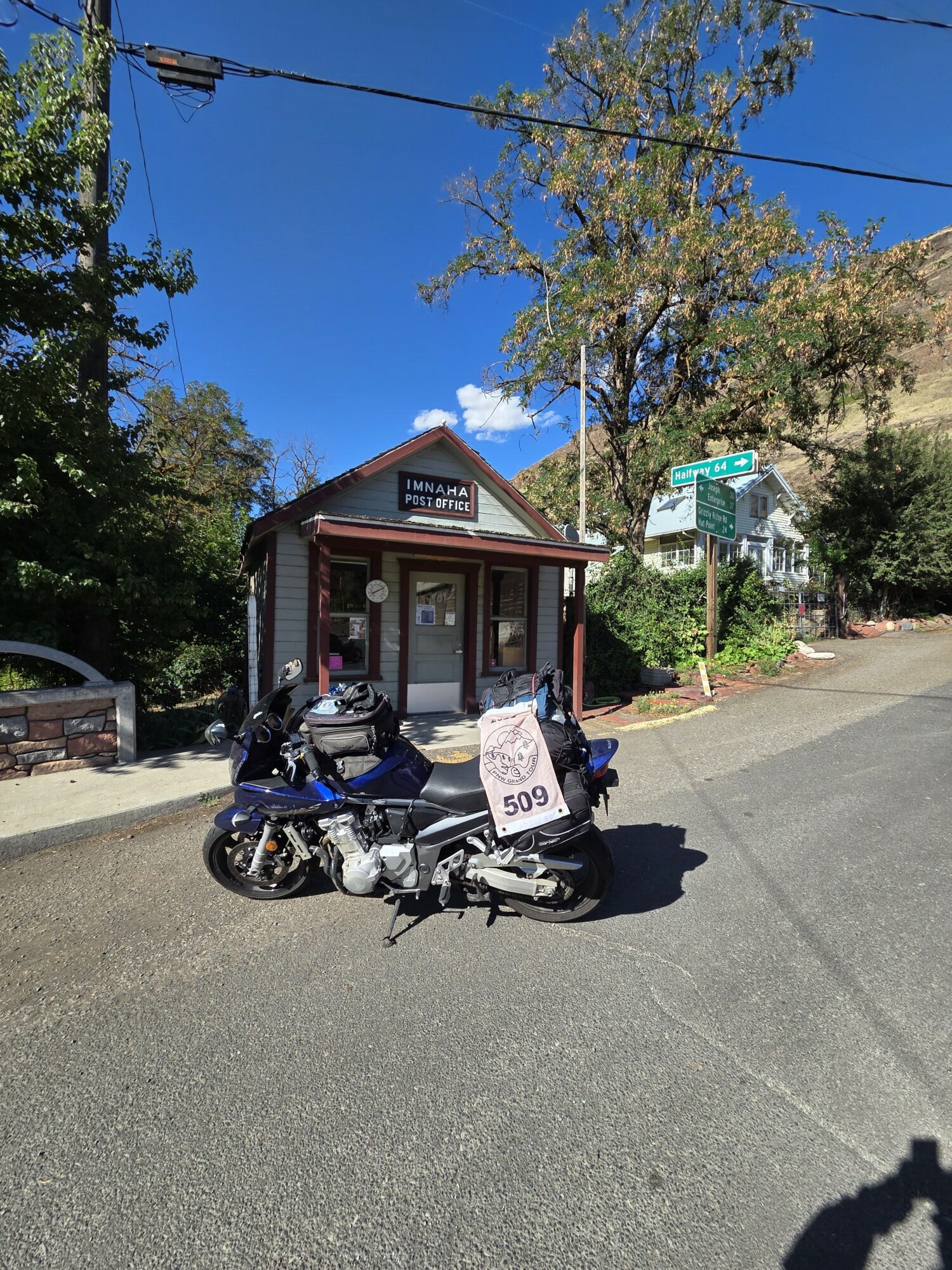 Take a picture of the Imnaha Post Office with your bike and flag in the picture.