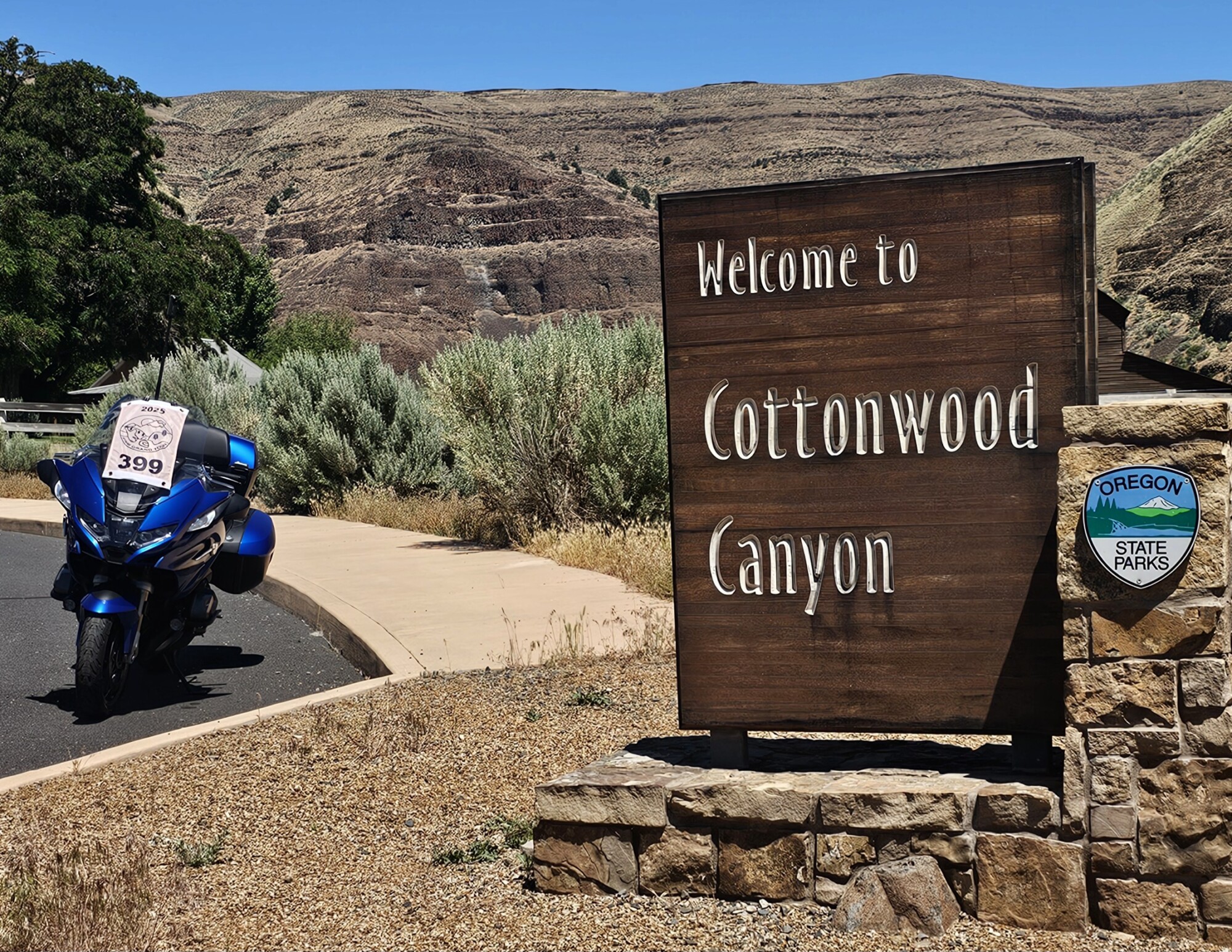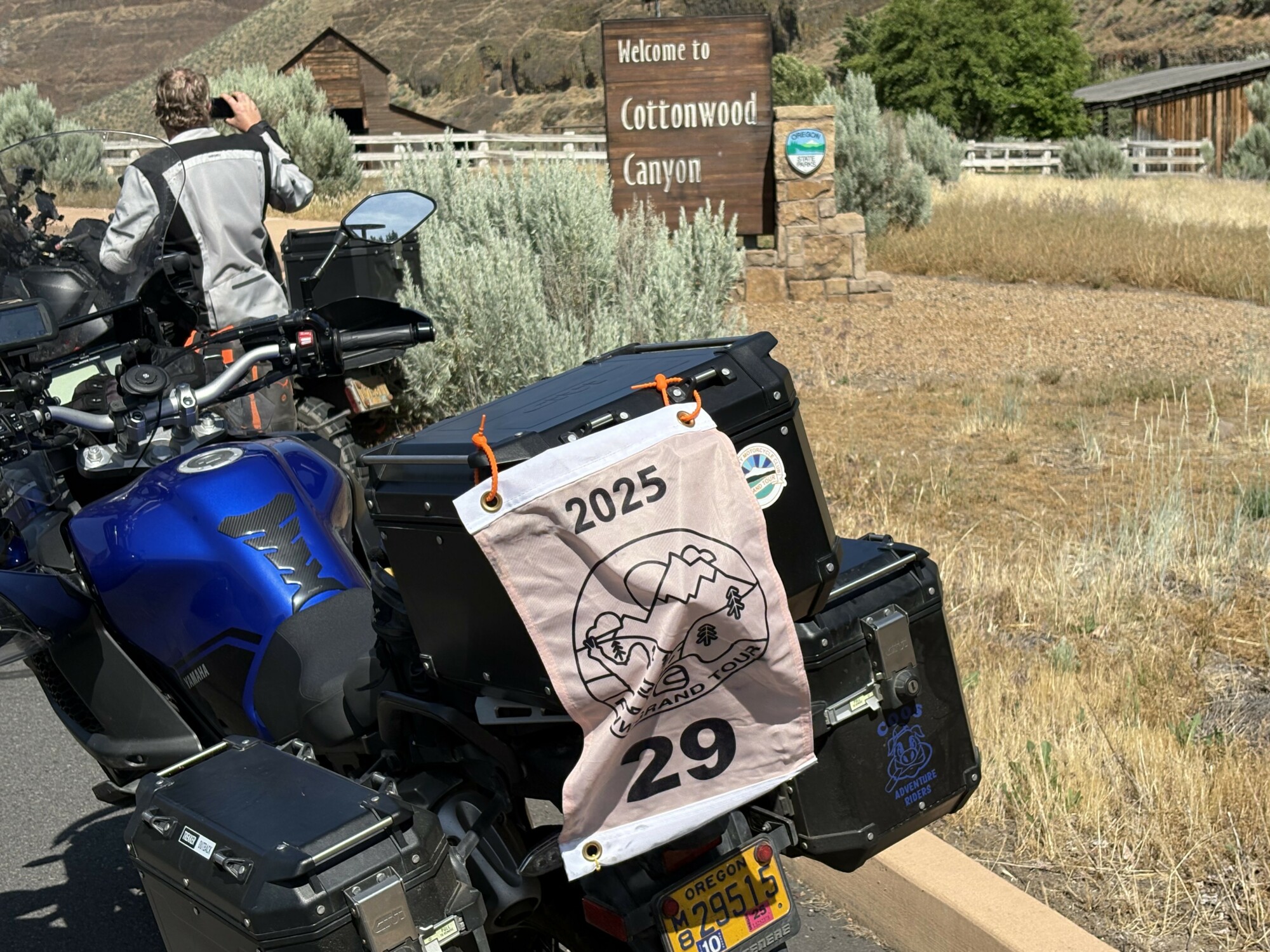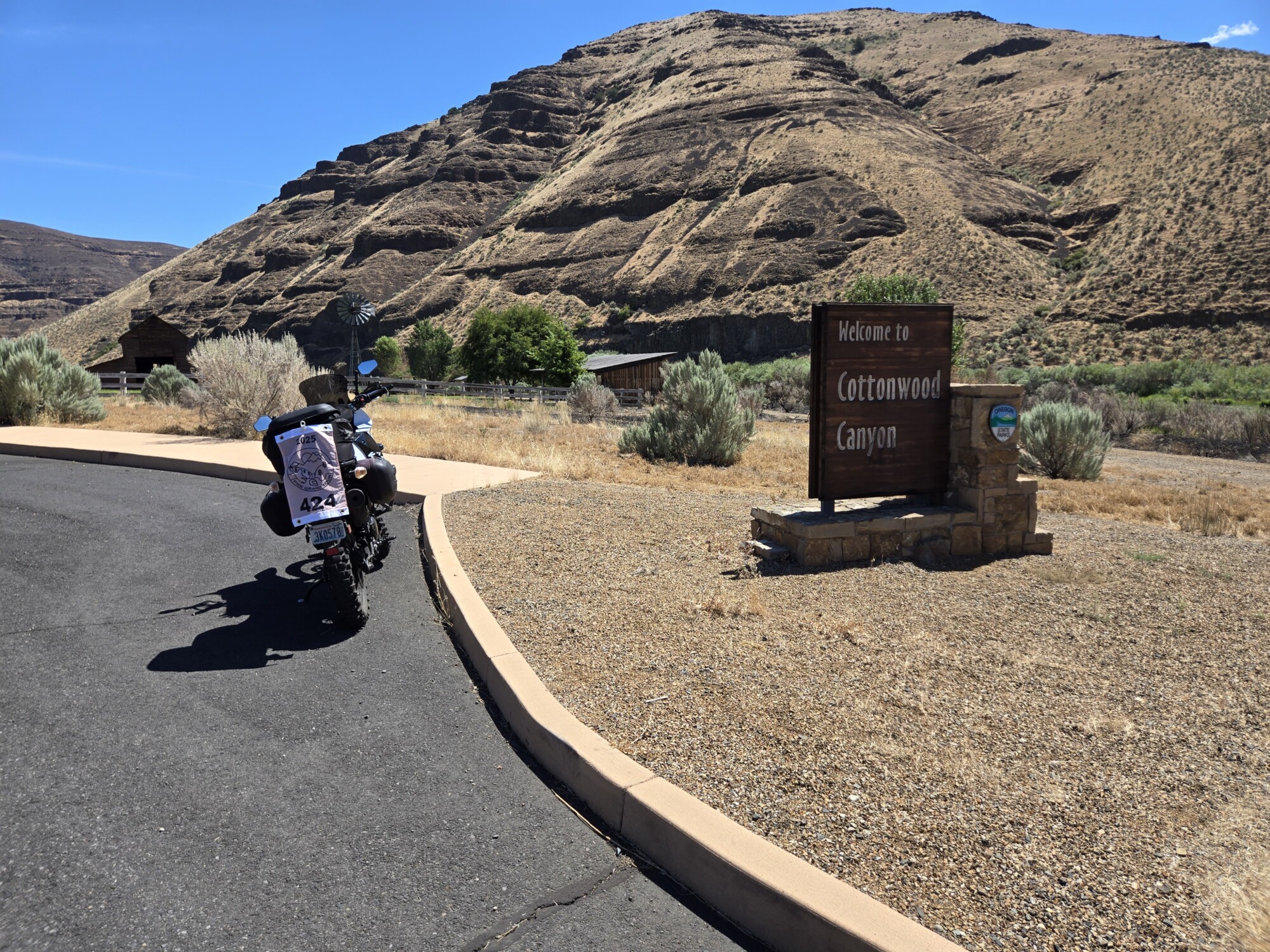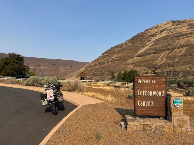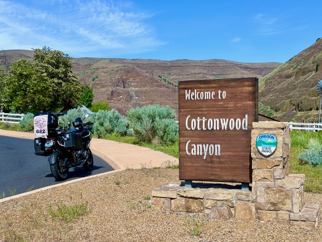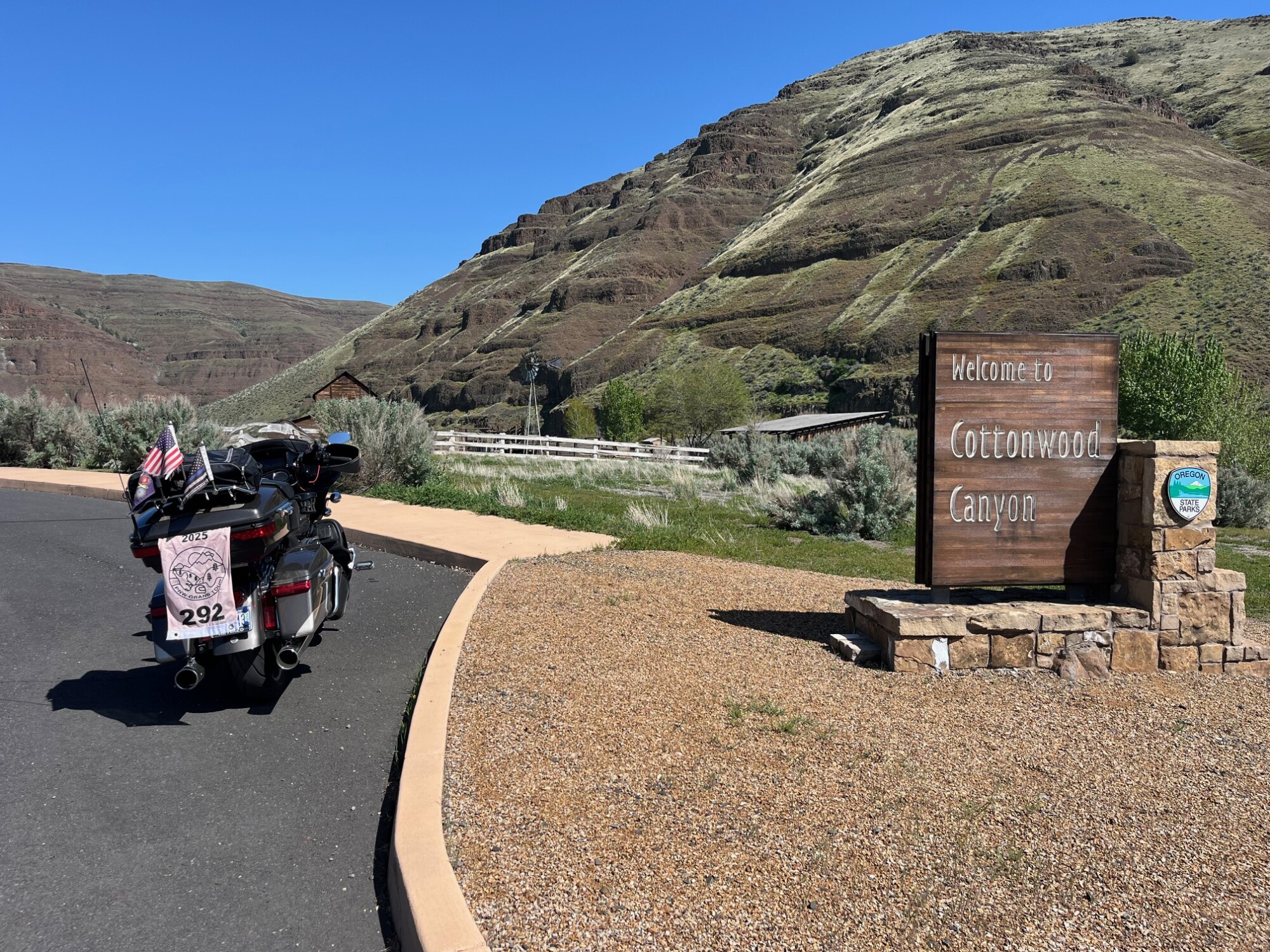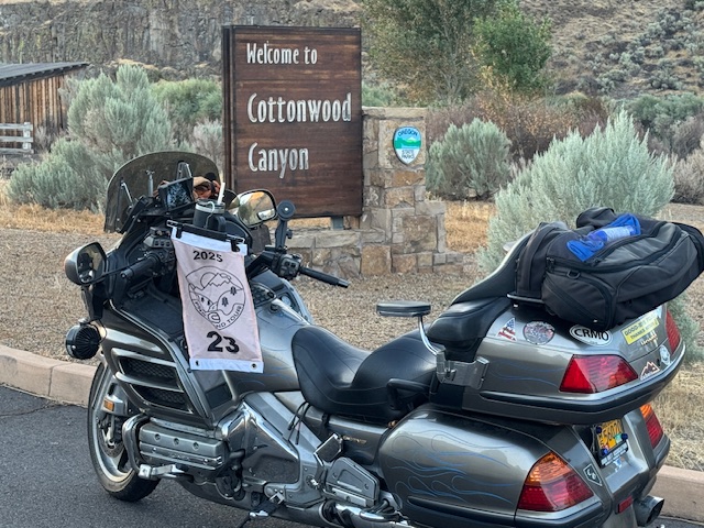 Take a picture of the Cottonwood Canyon Welcome sign with your bike and flag in the picture.