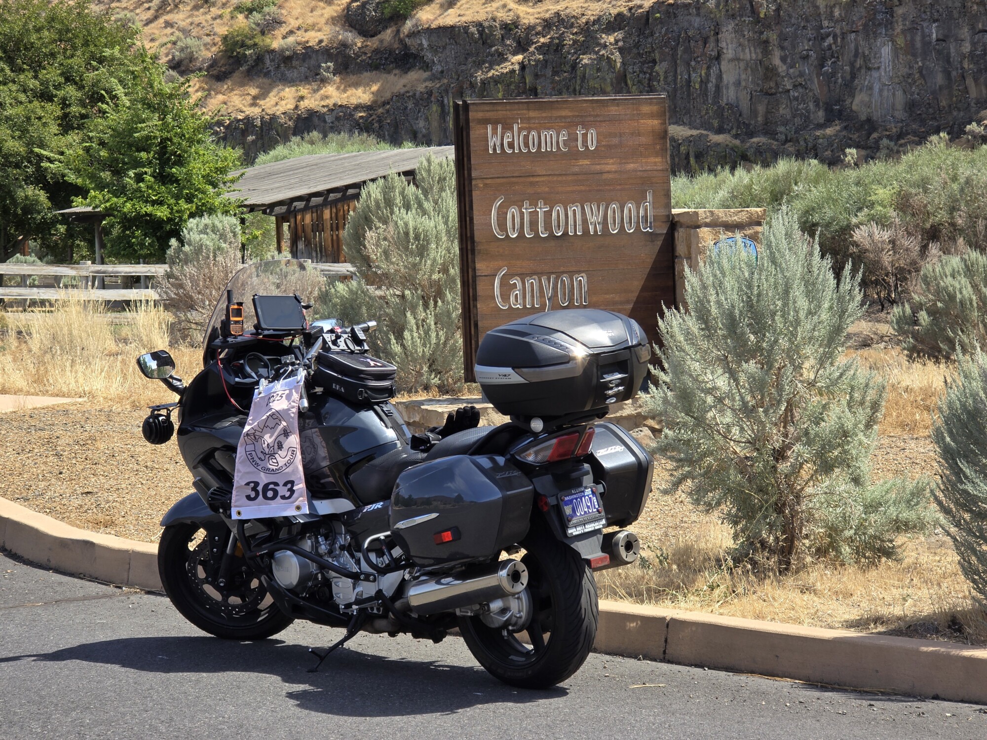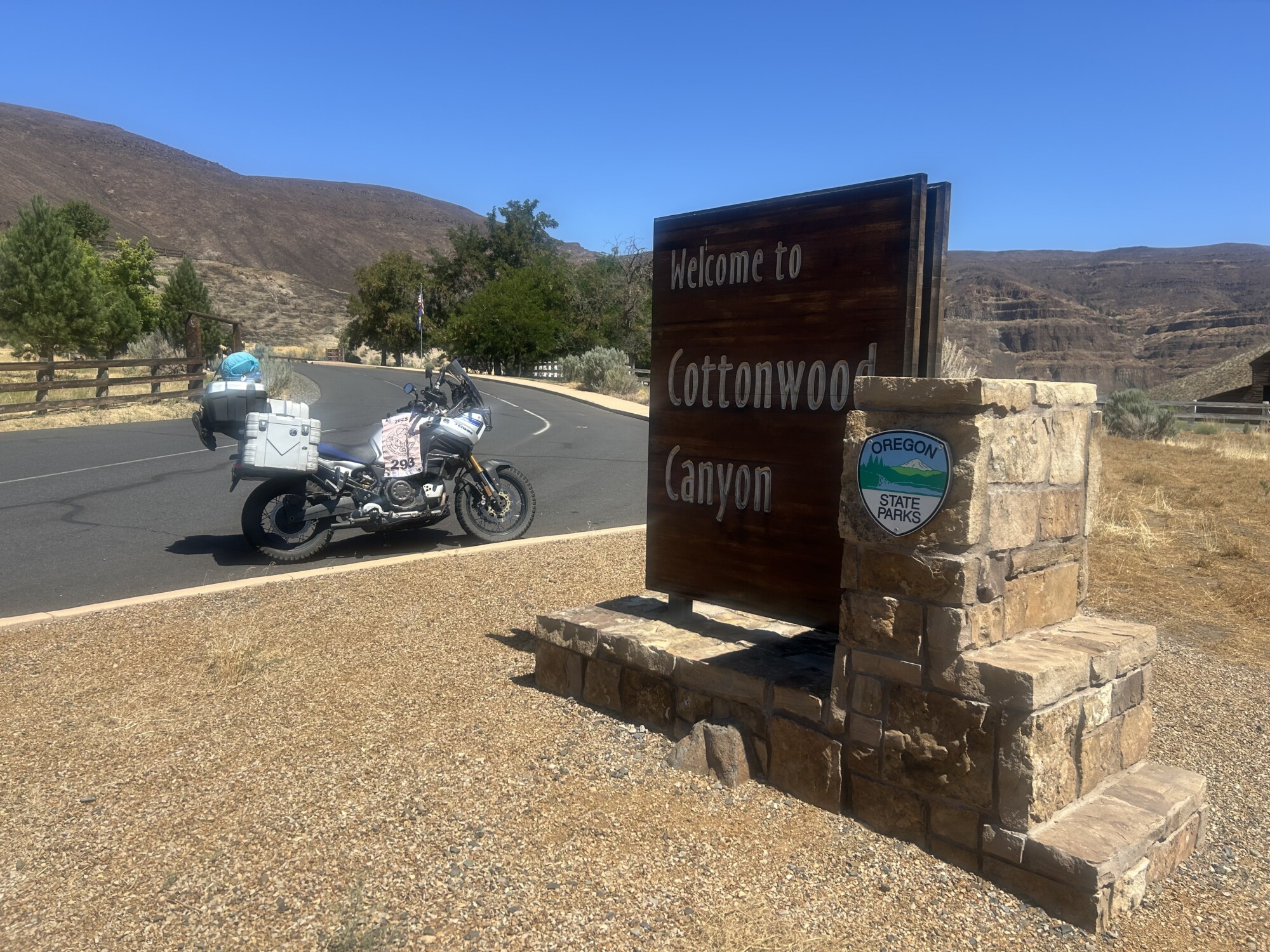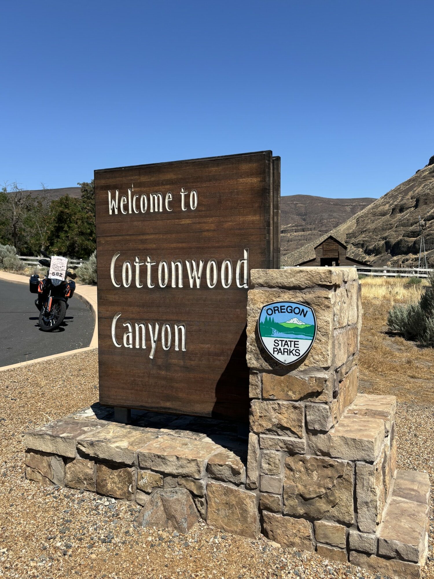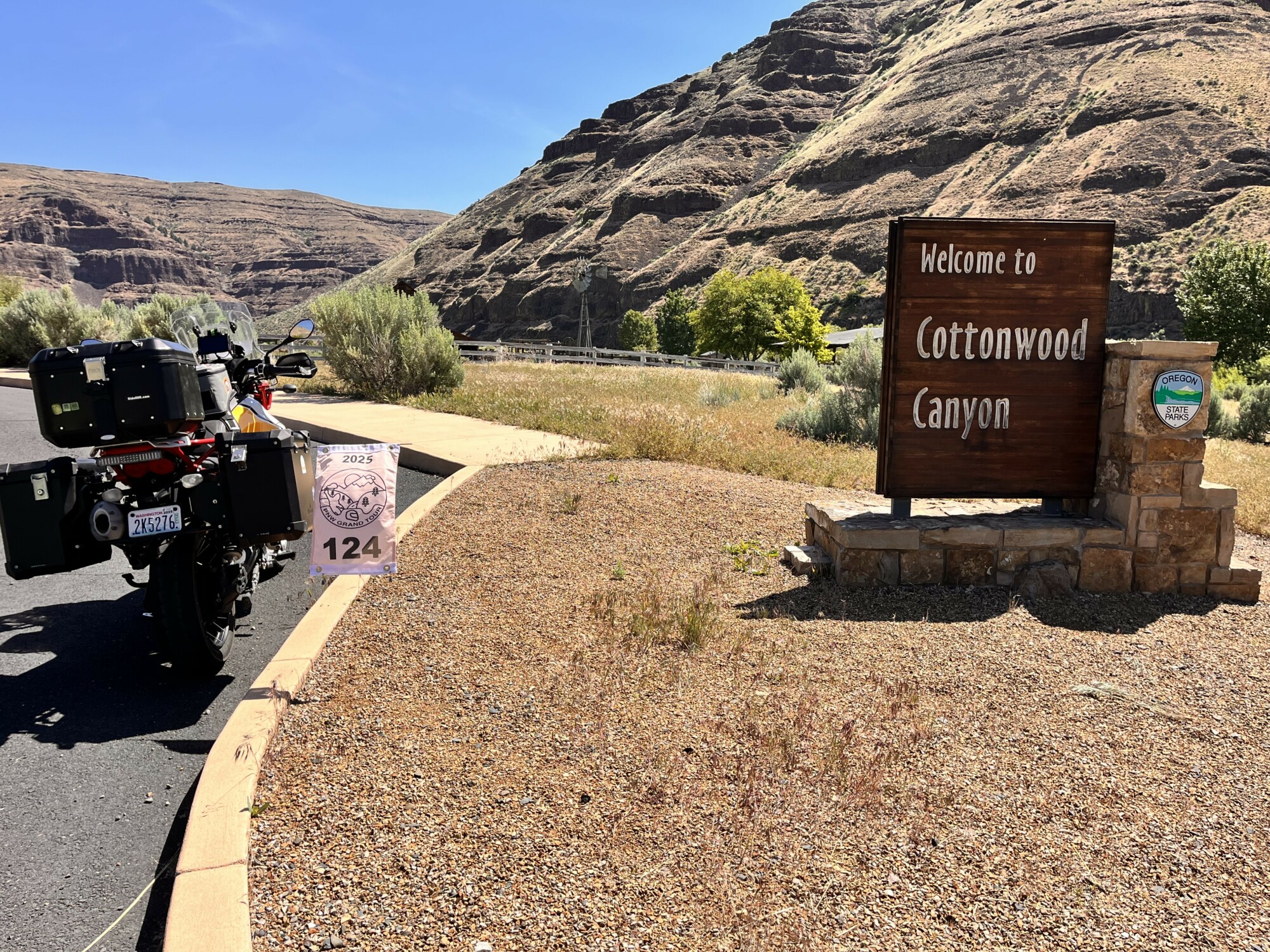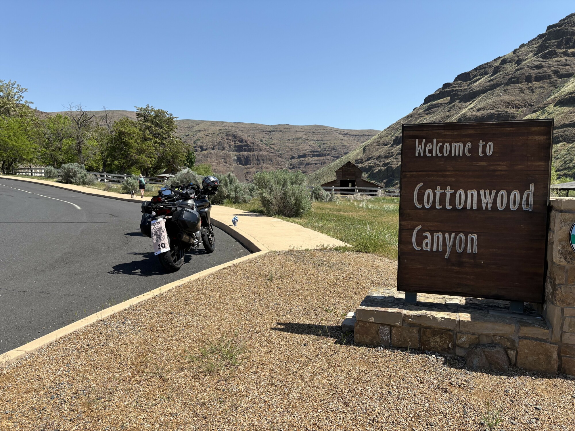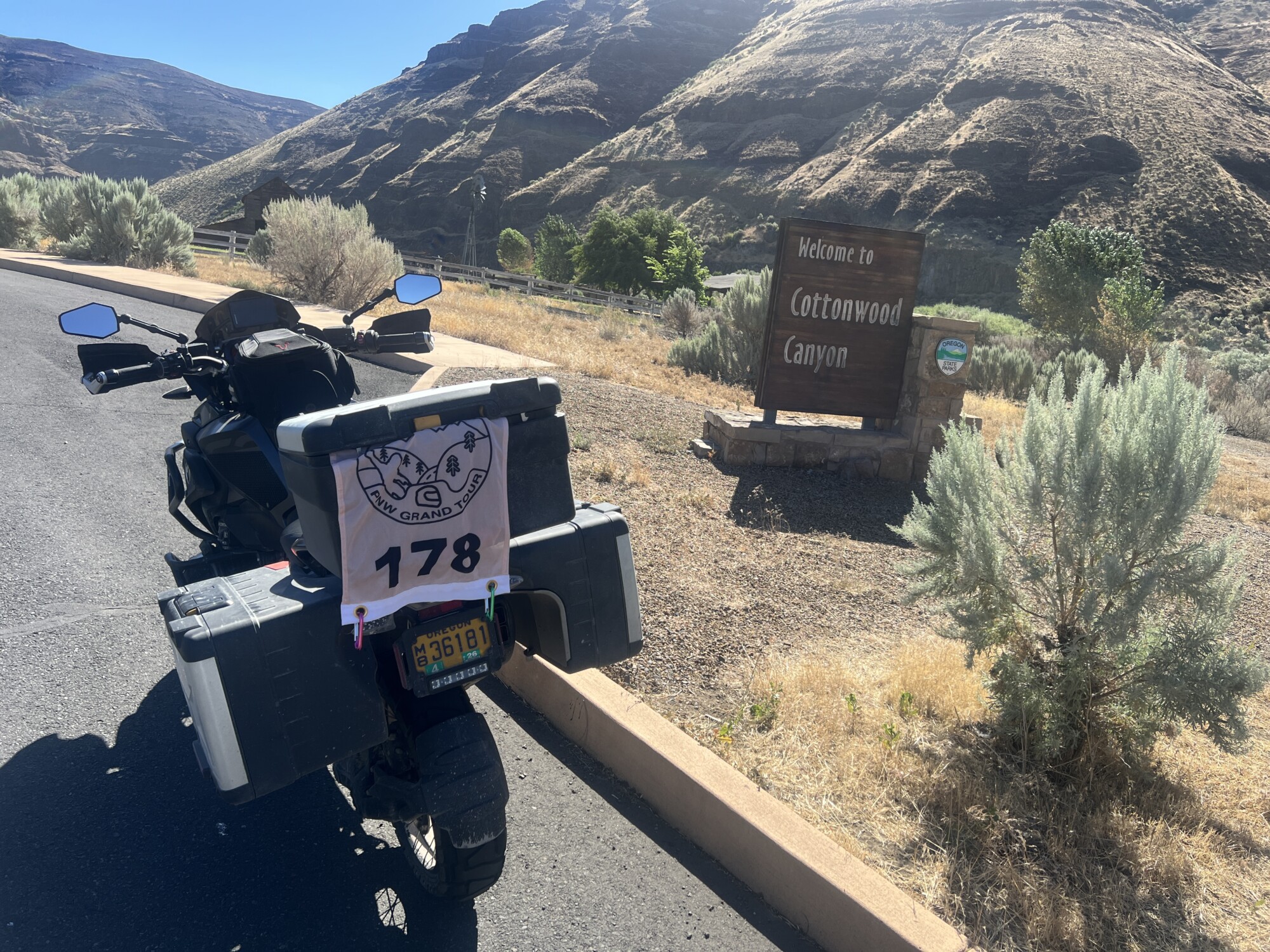 Take a picture of the Cottonwood Canyon Welcome sign with your bike and flag in the picture.