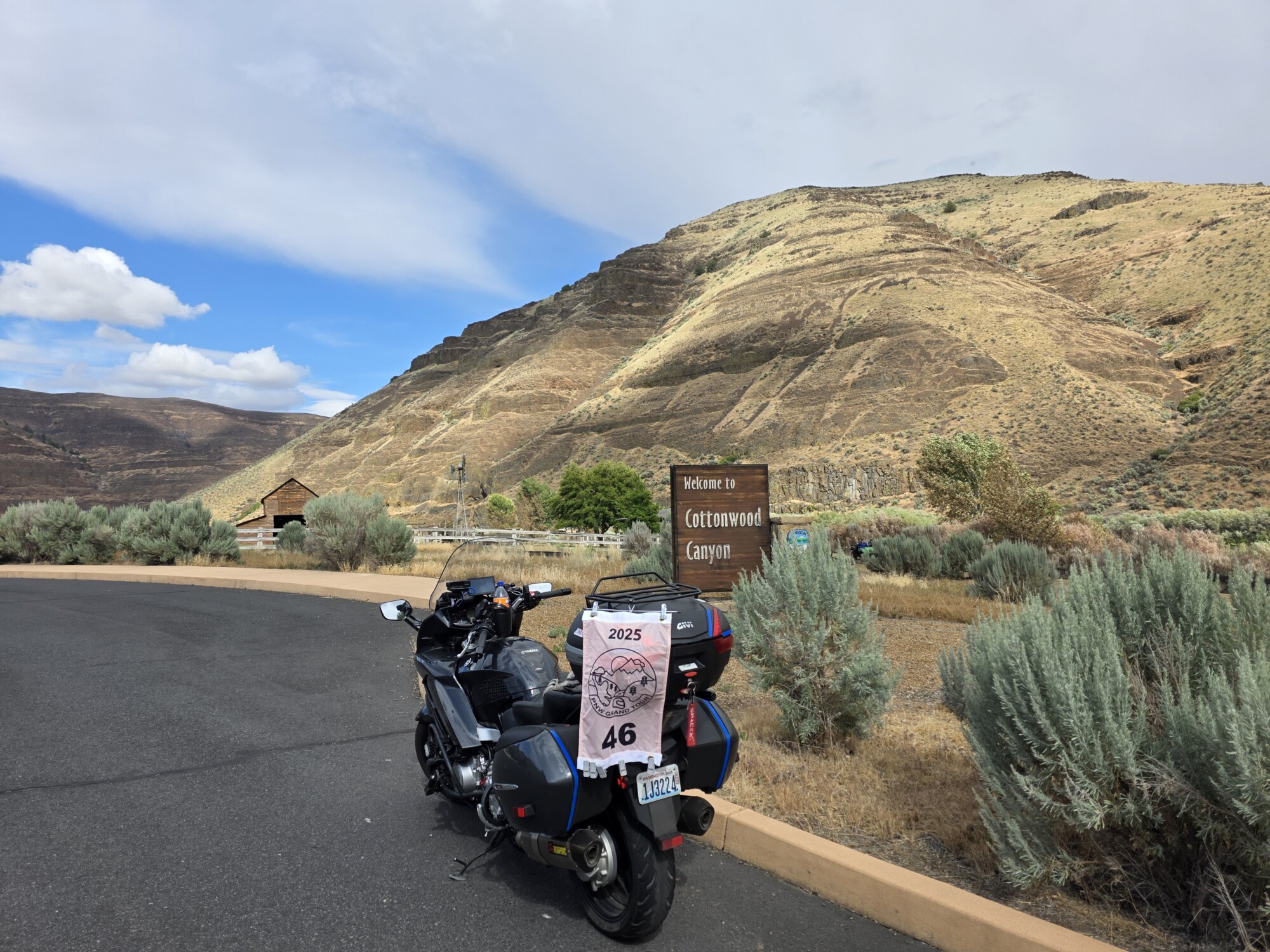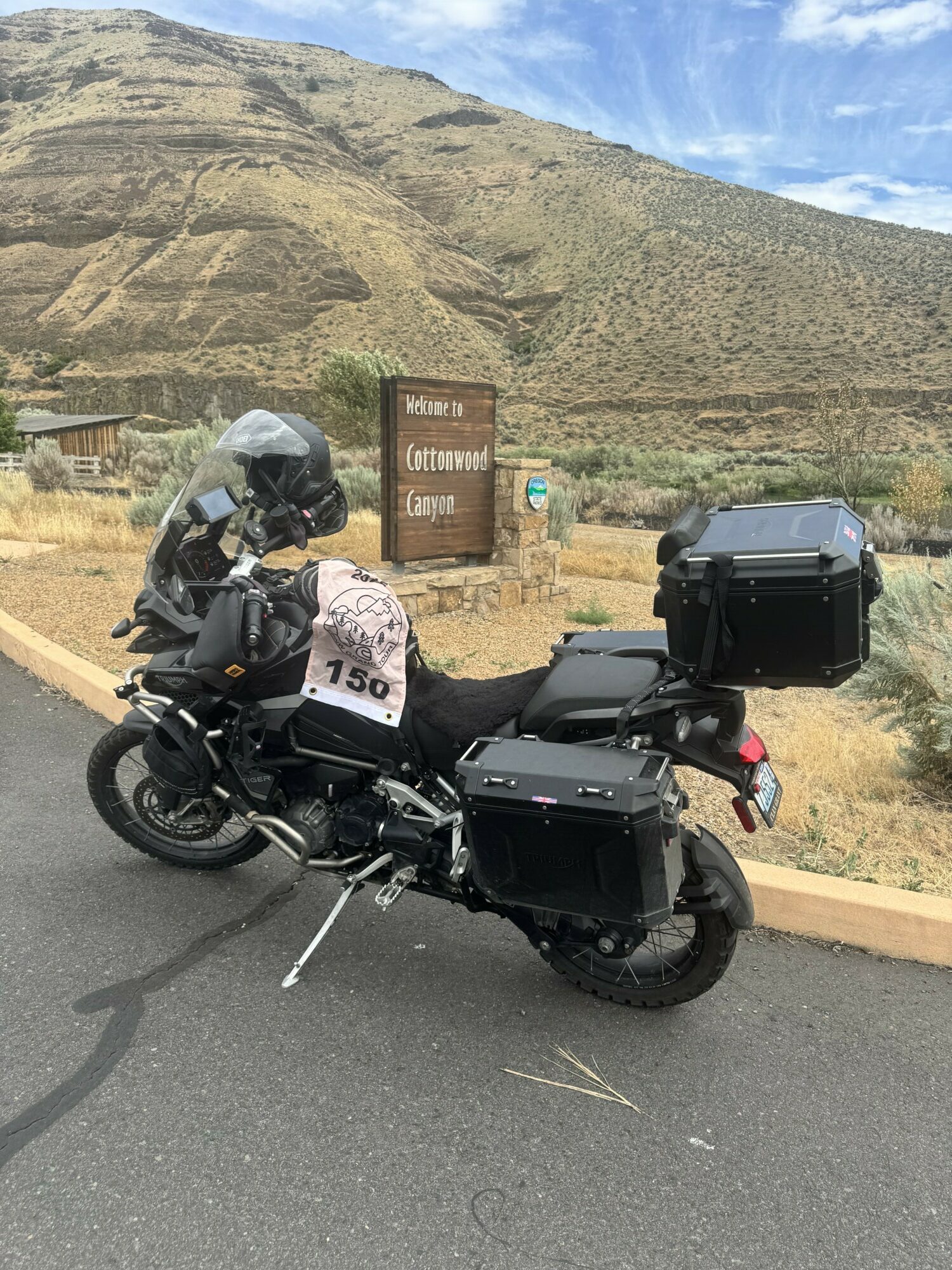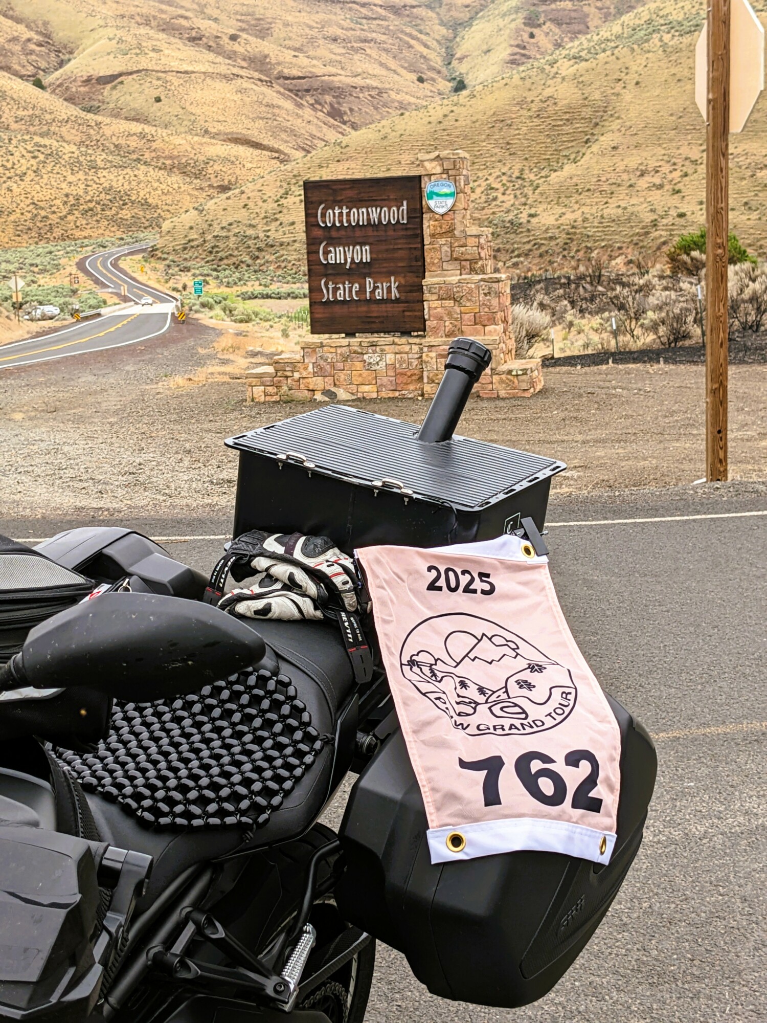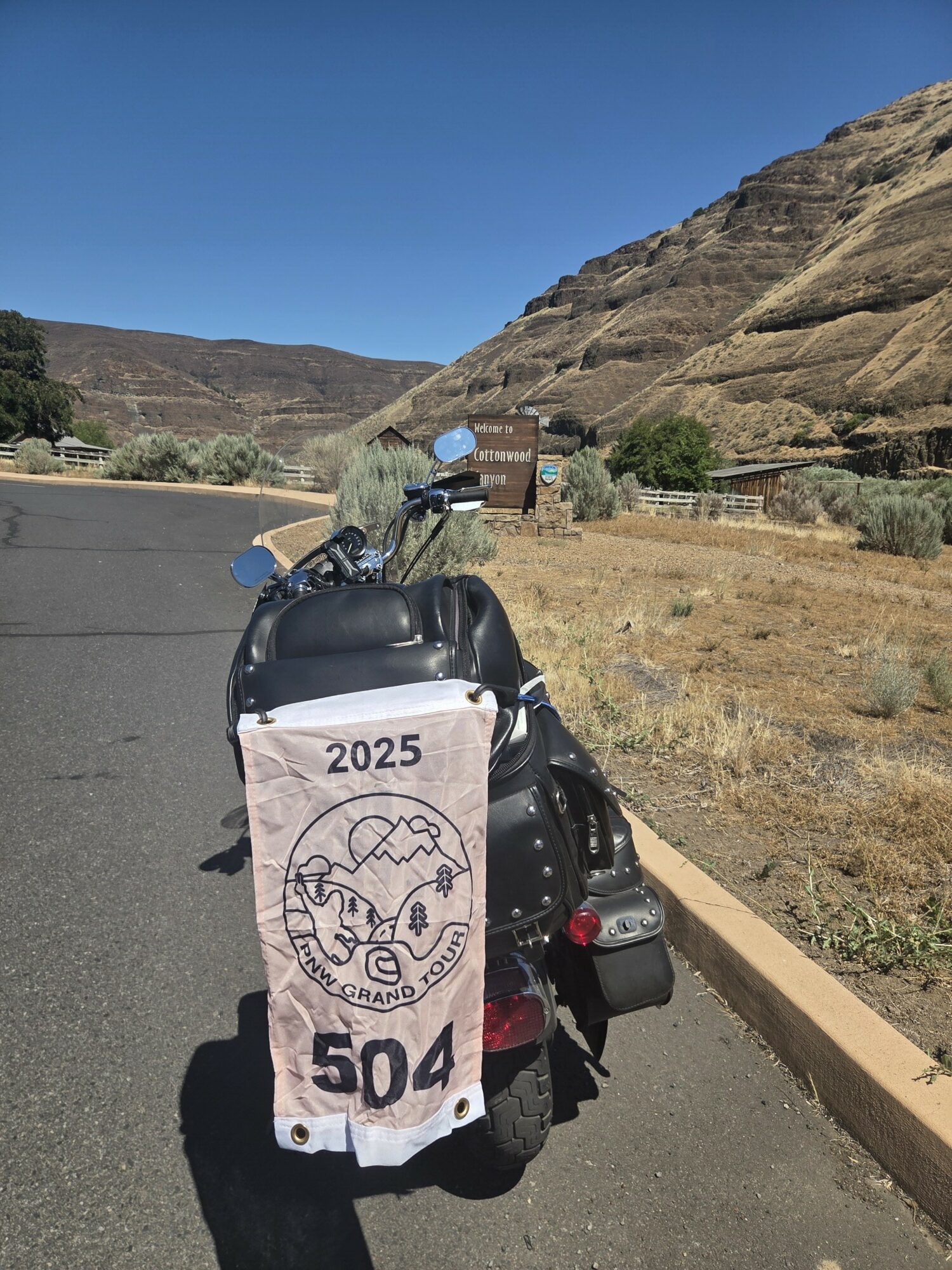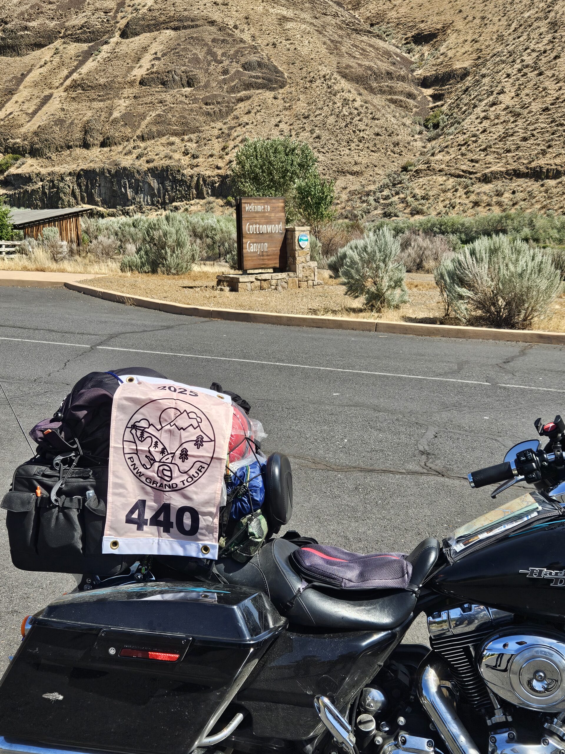 Take a picture of the Cottonwood Canyon Welcome sign with your bike and flag in the picture.