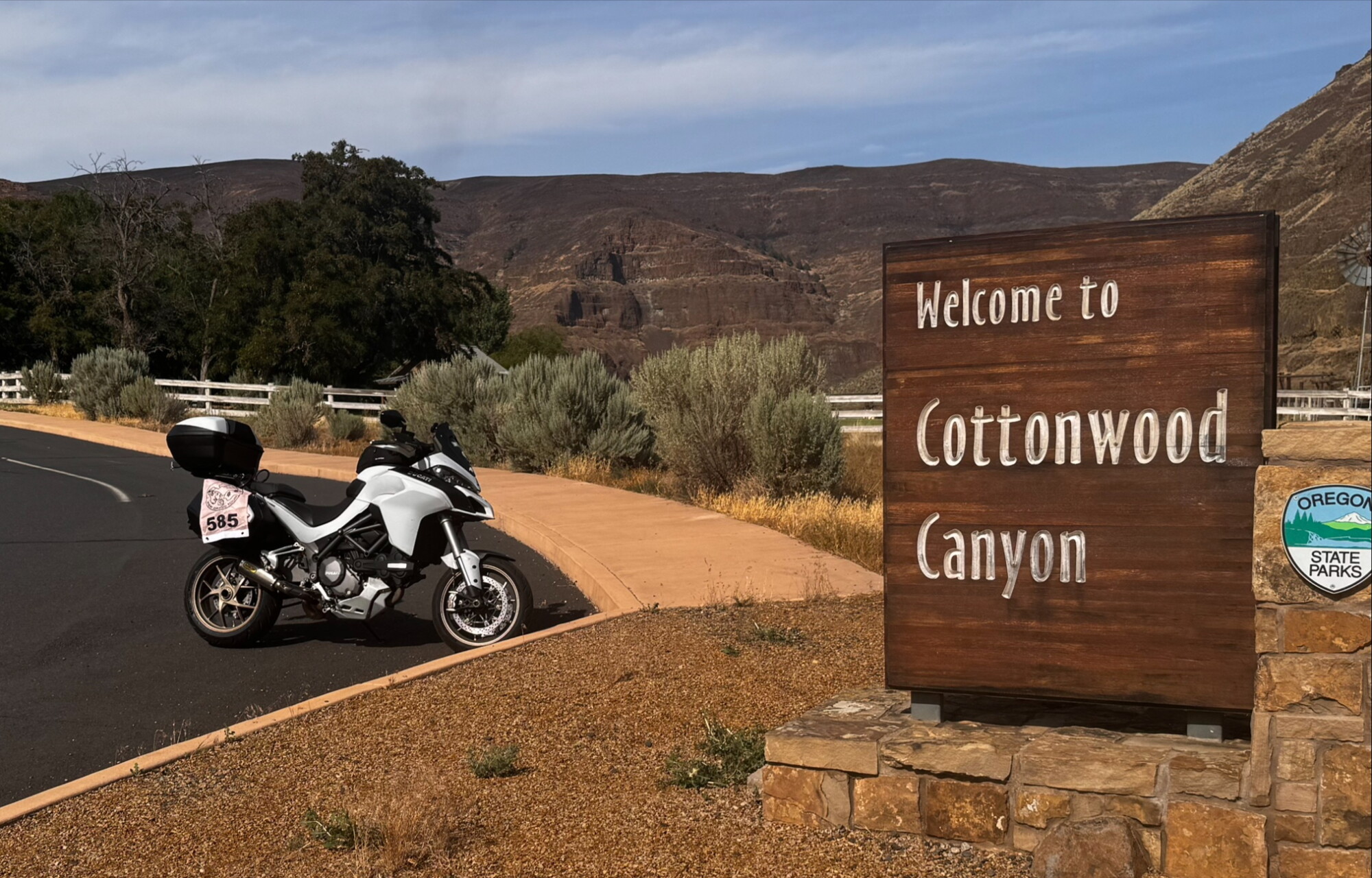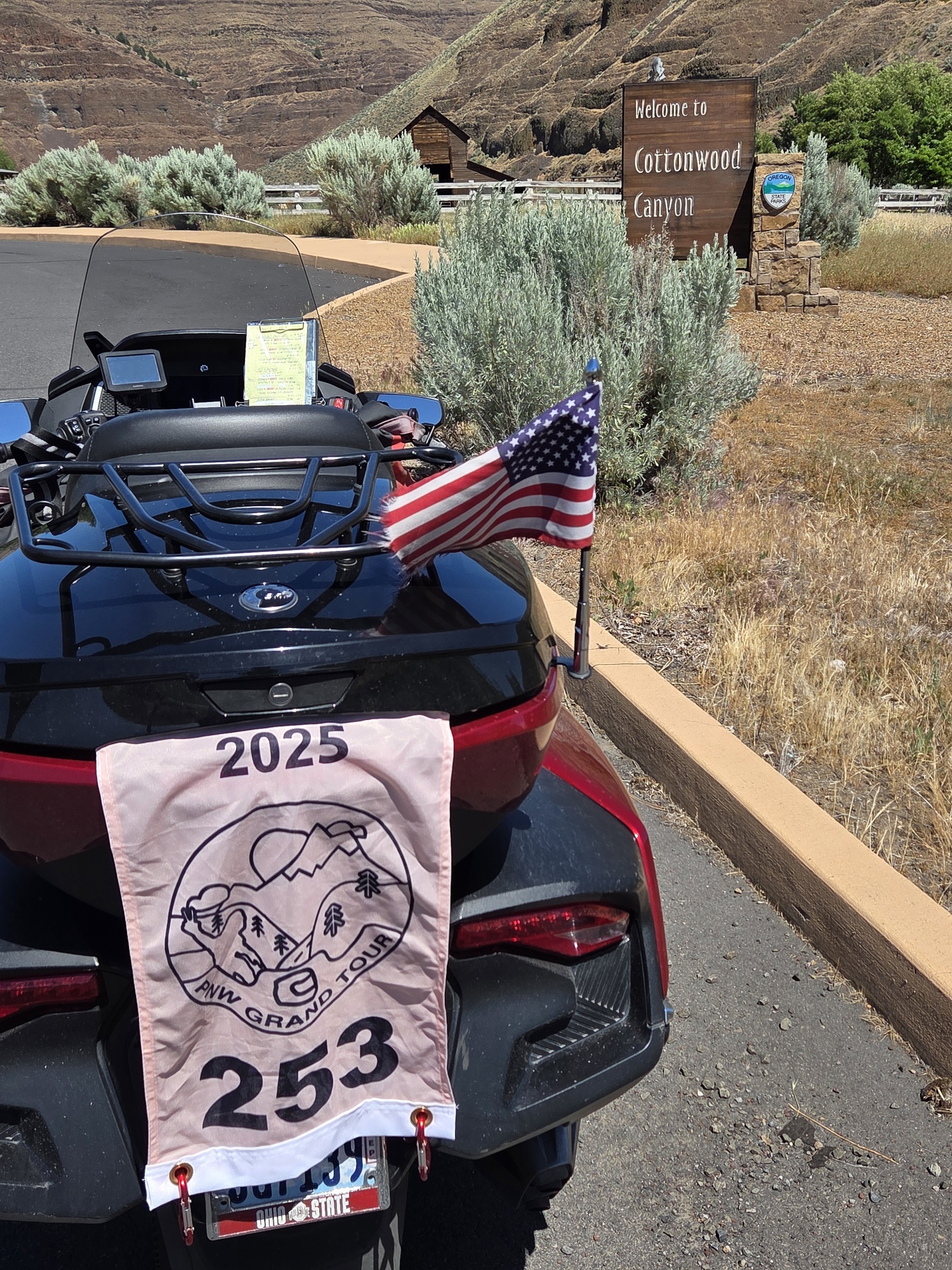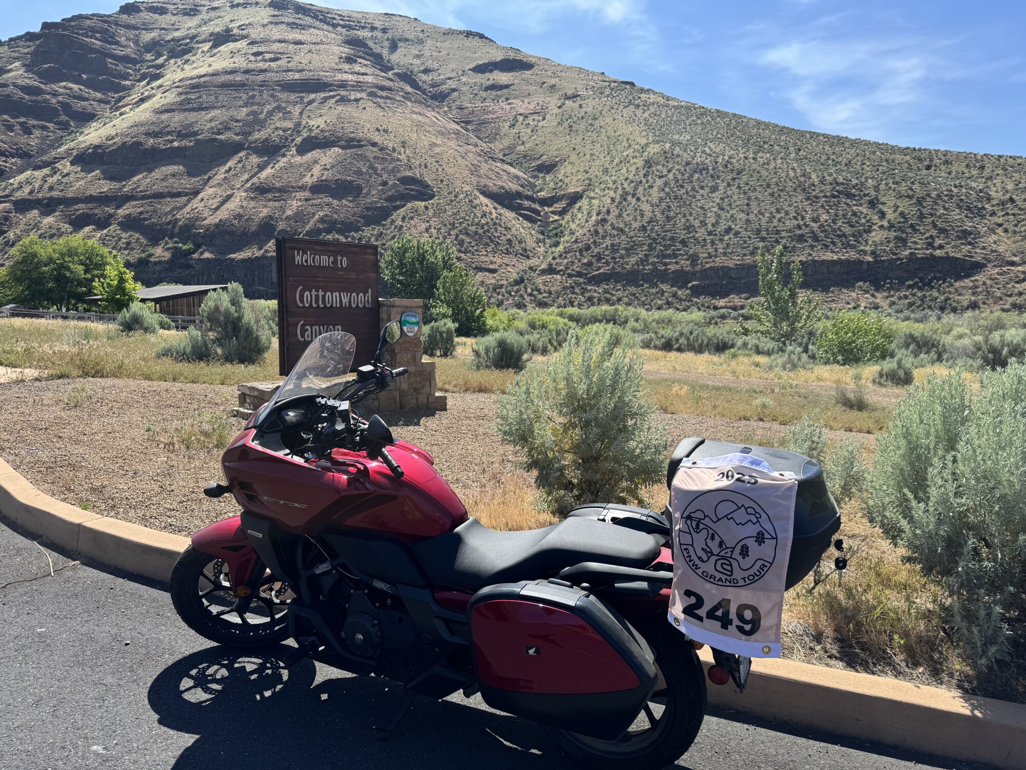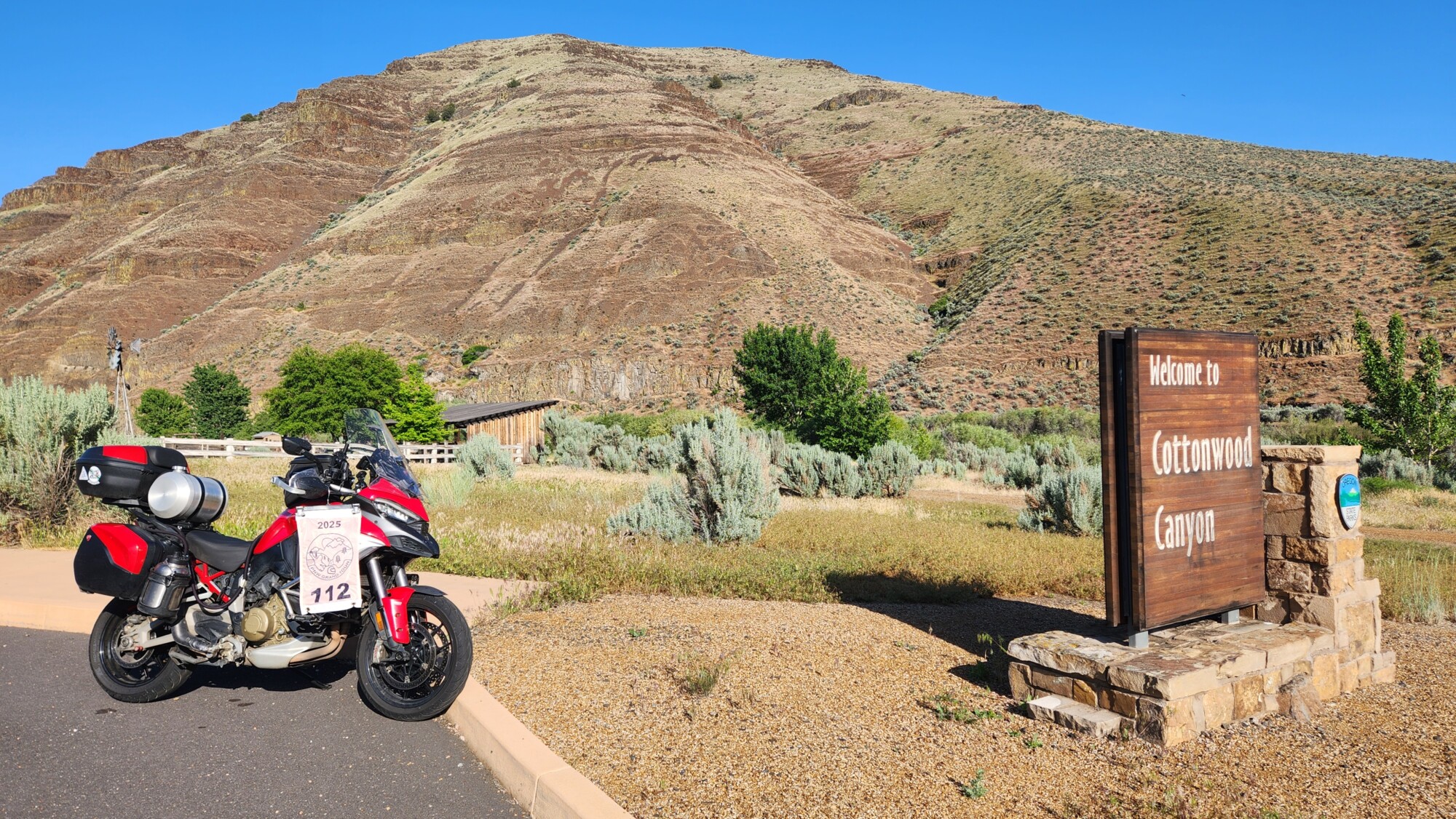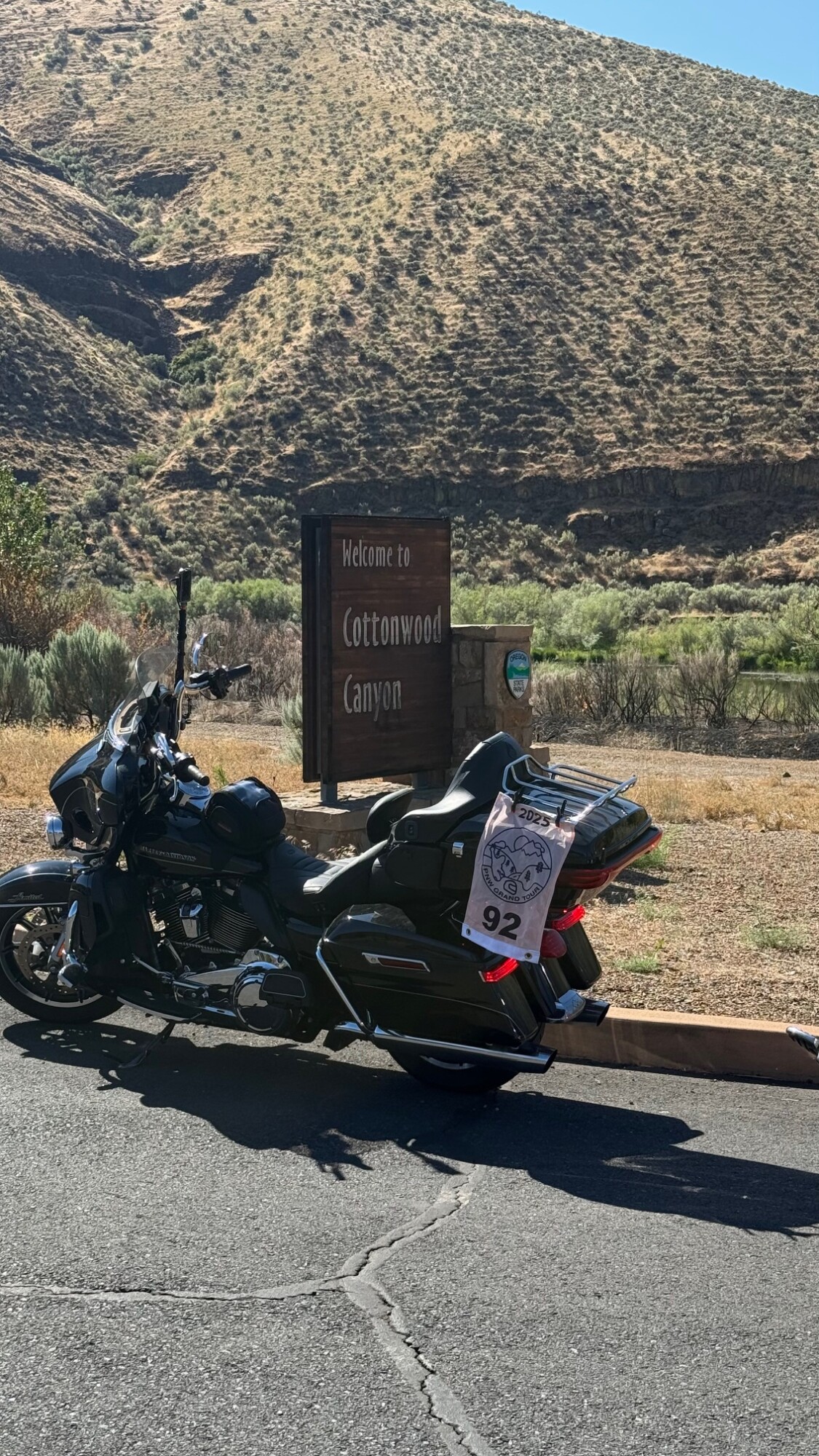 Take a picture of the Cottonwood Canyon Welcome sign with your bike and flag in the picture.