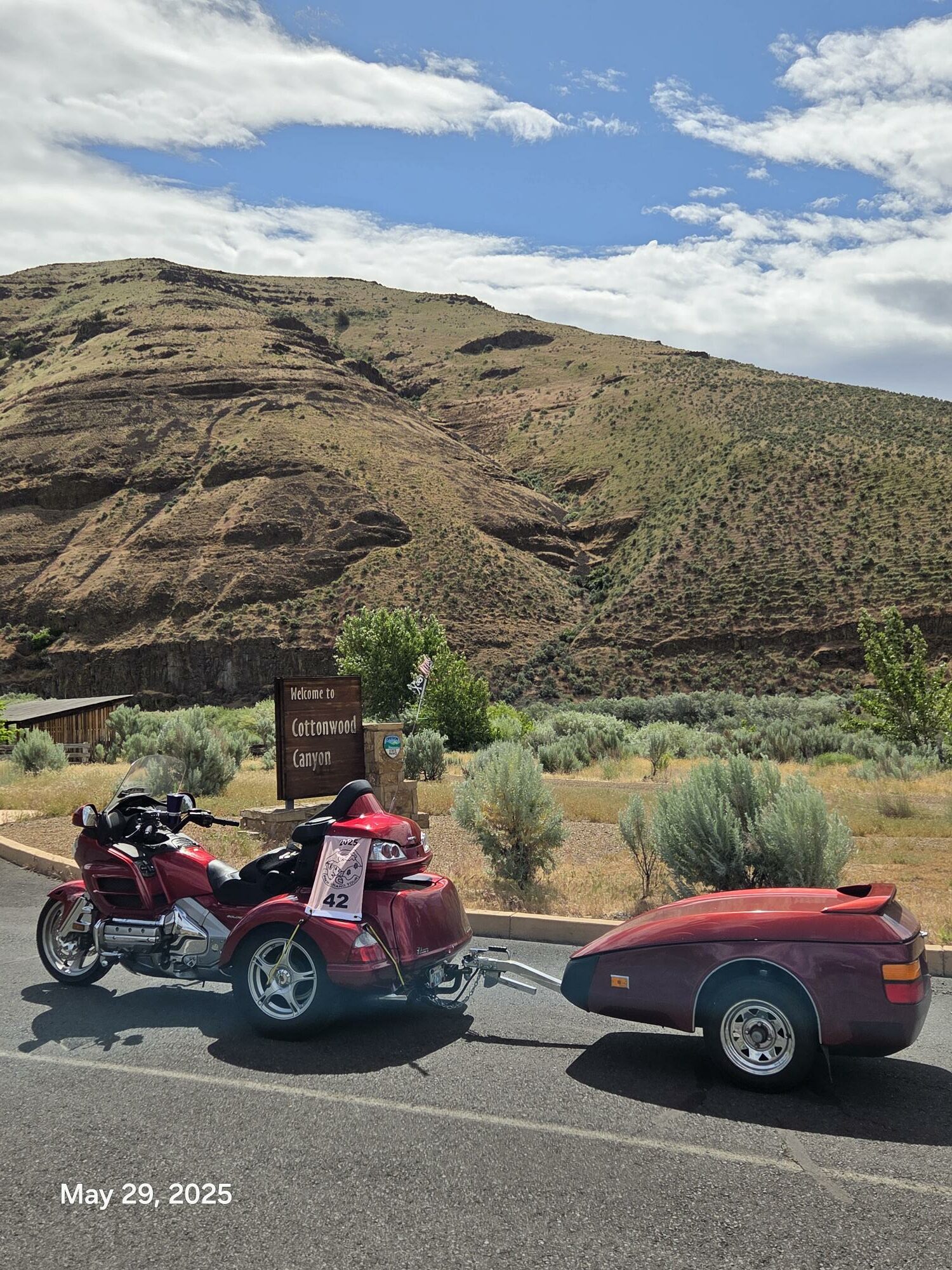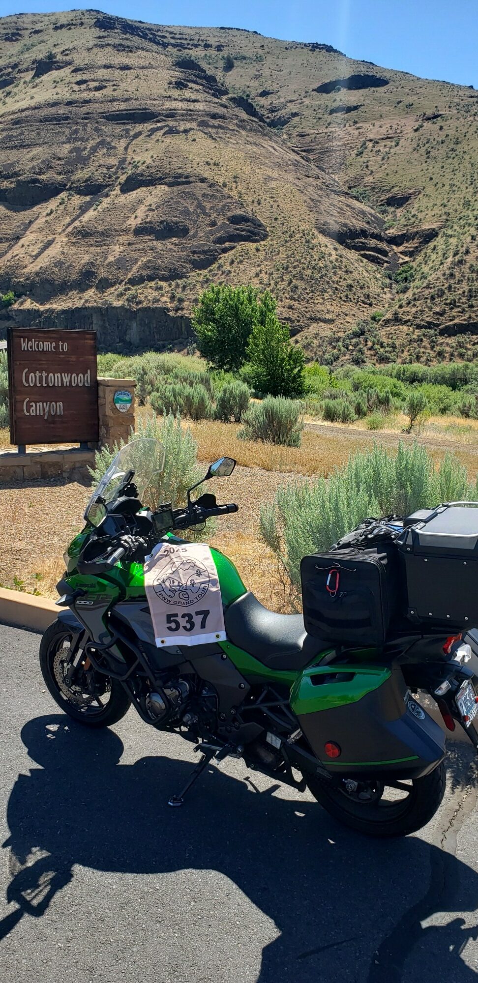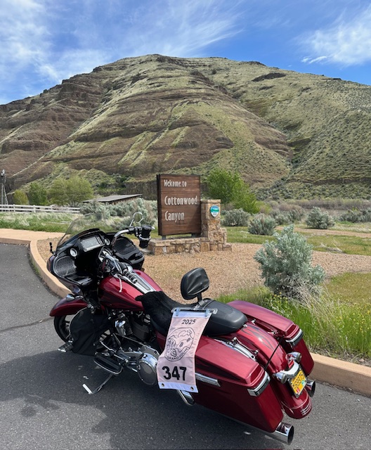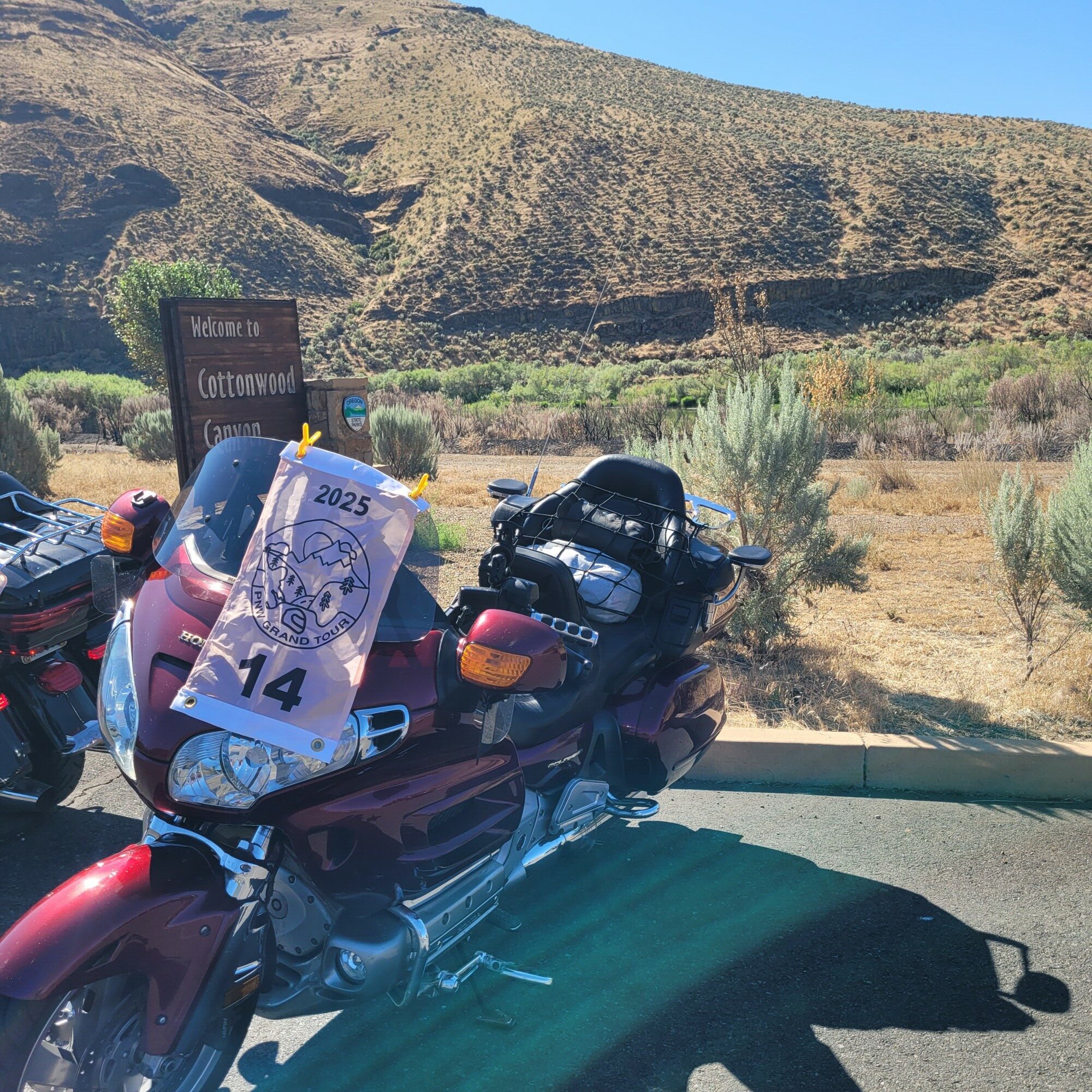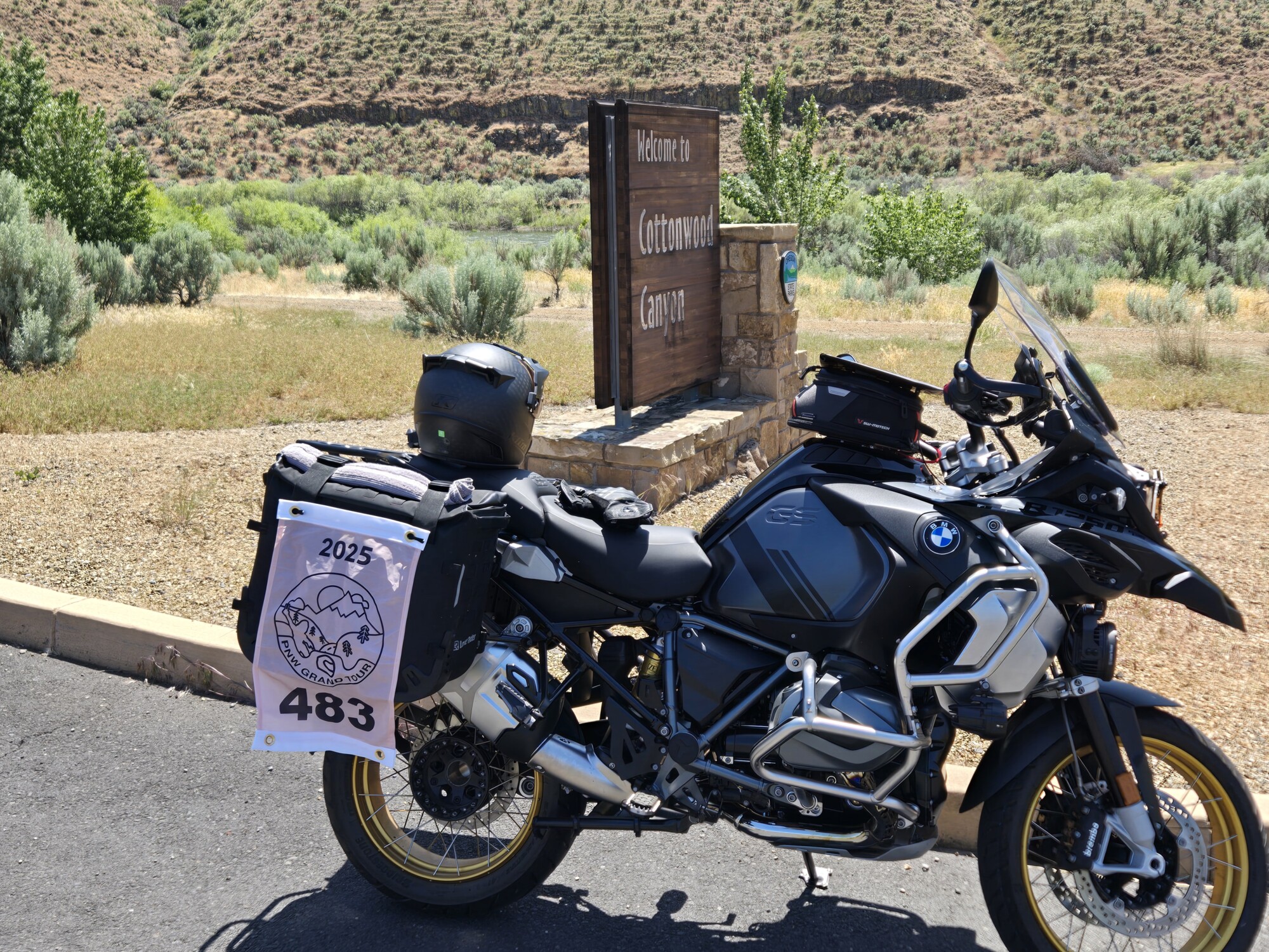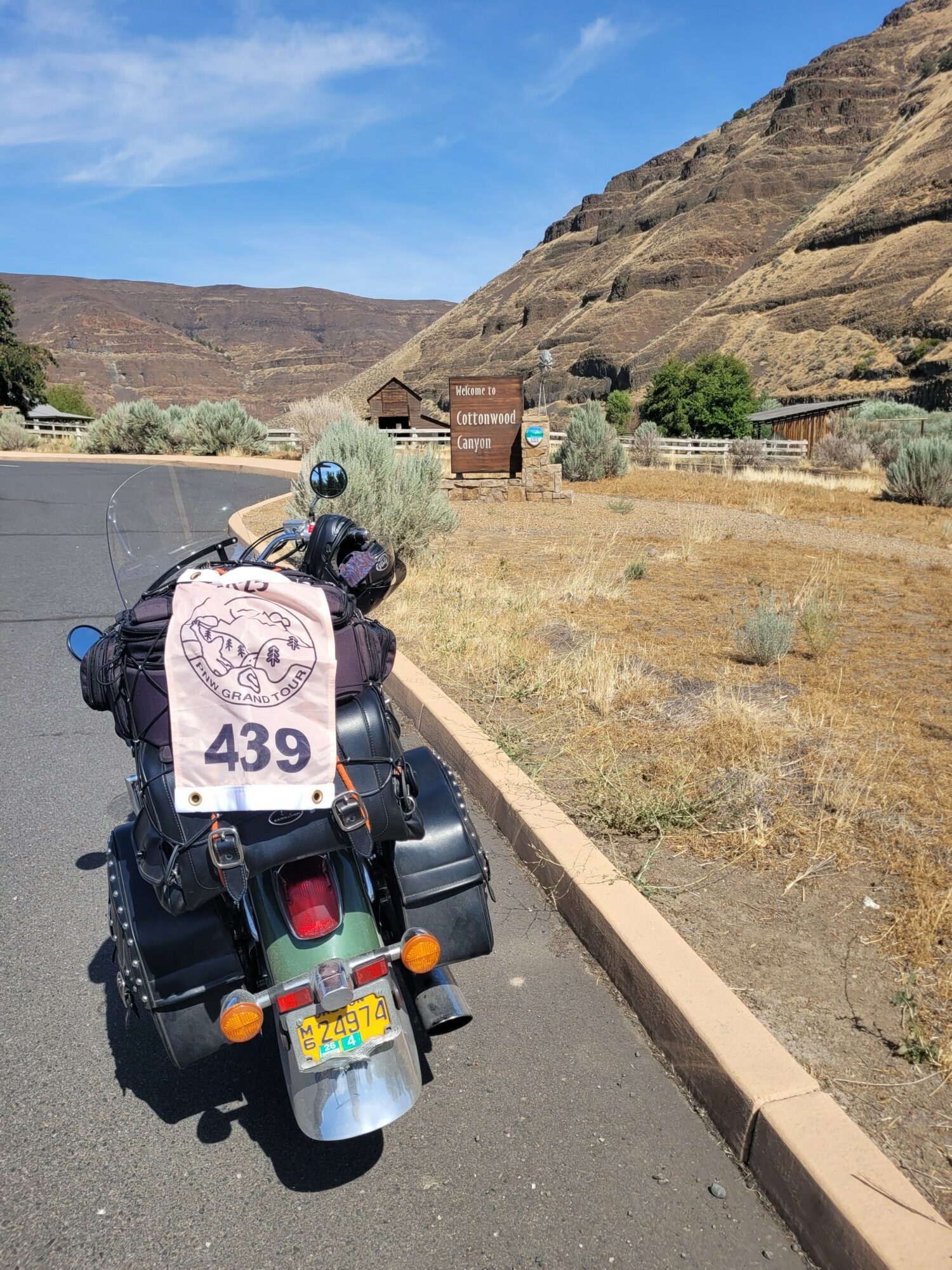 Take a picture of the Cottonwood Canyon Welcome sign with your bike and flag in the picture.