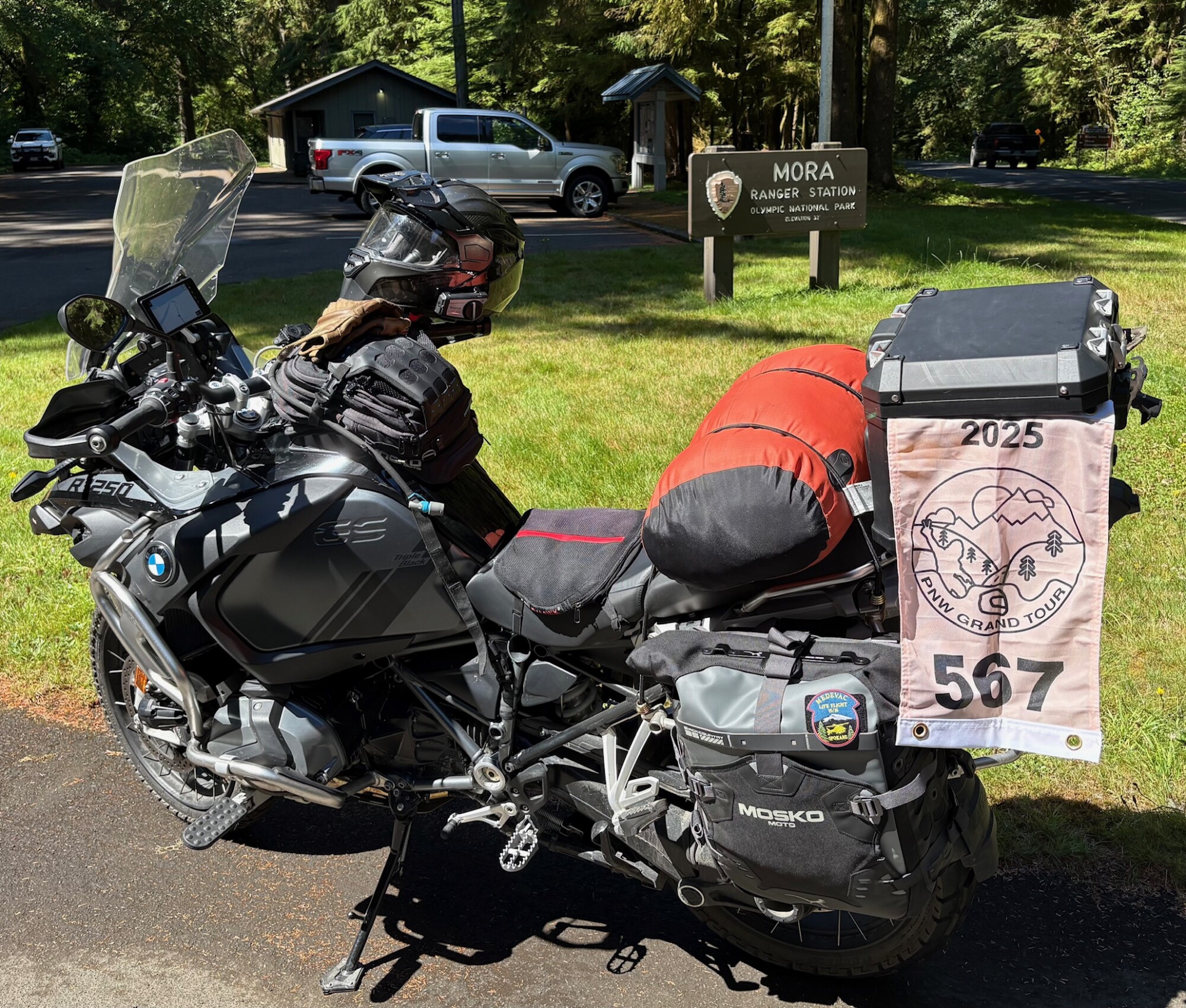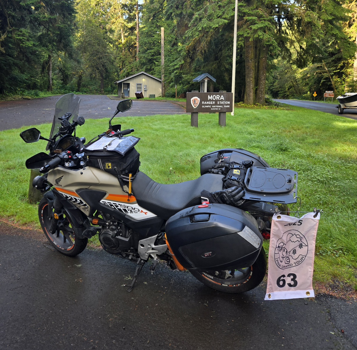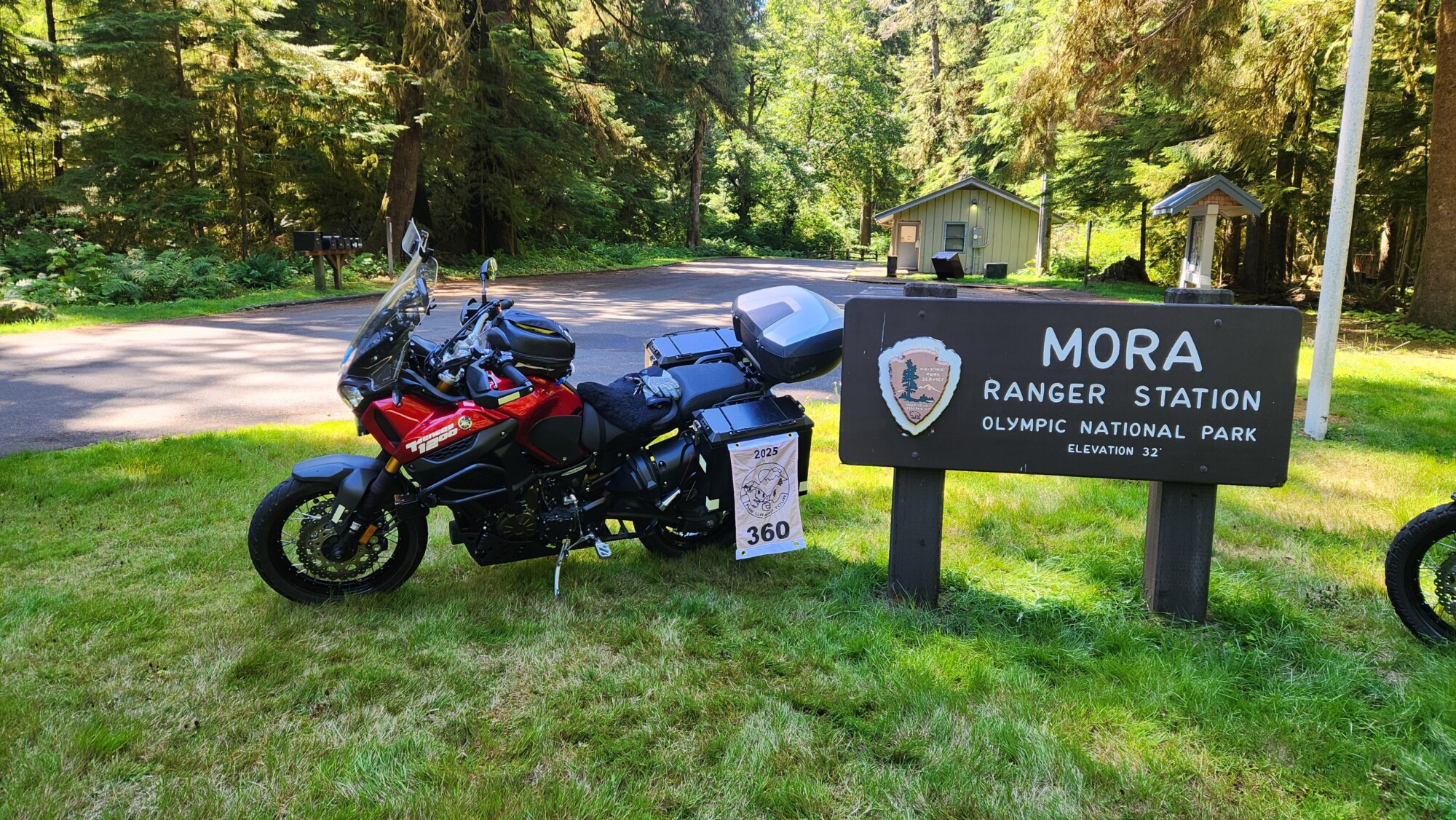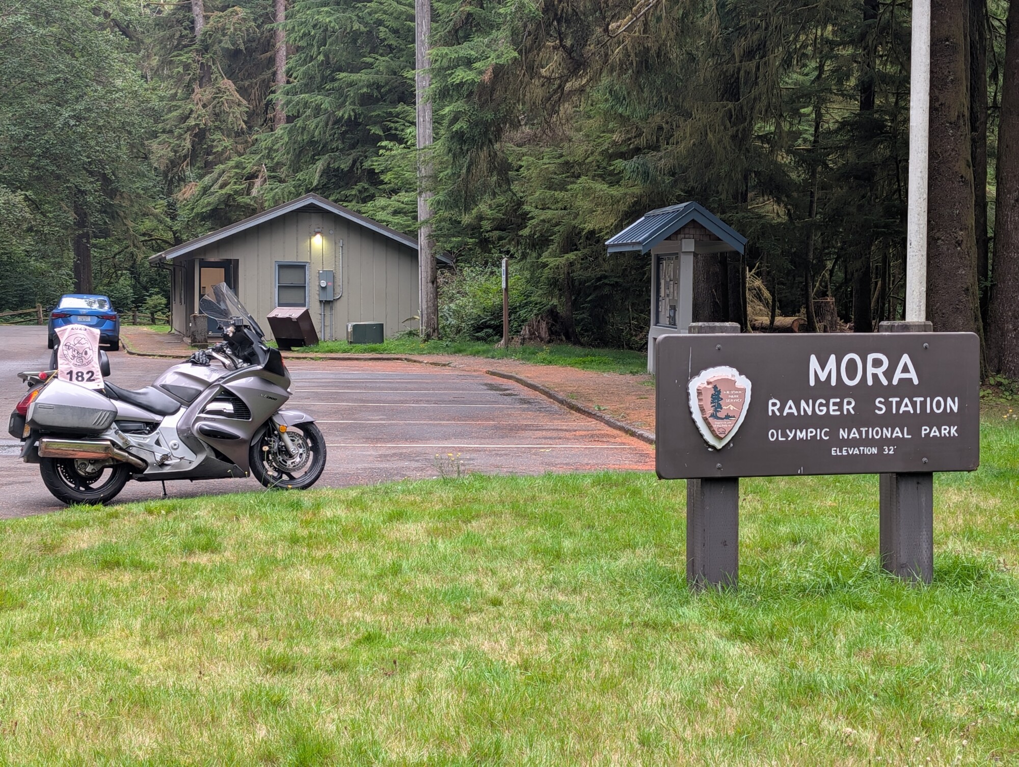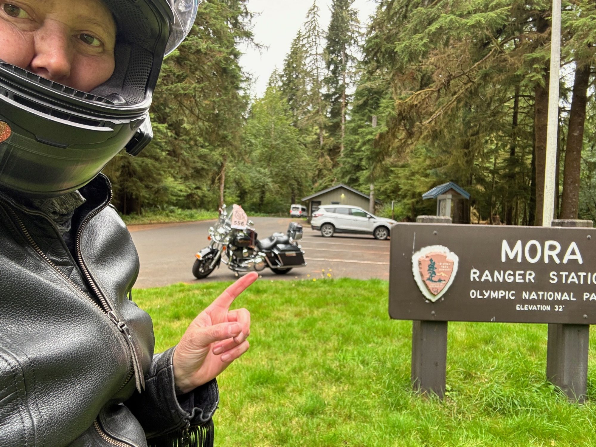 Take a picture of the Mora Ranger Station sign with your bike and flag in the picture.