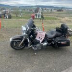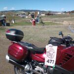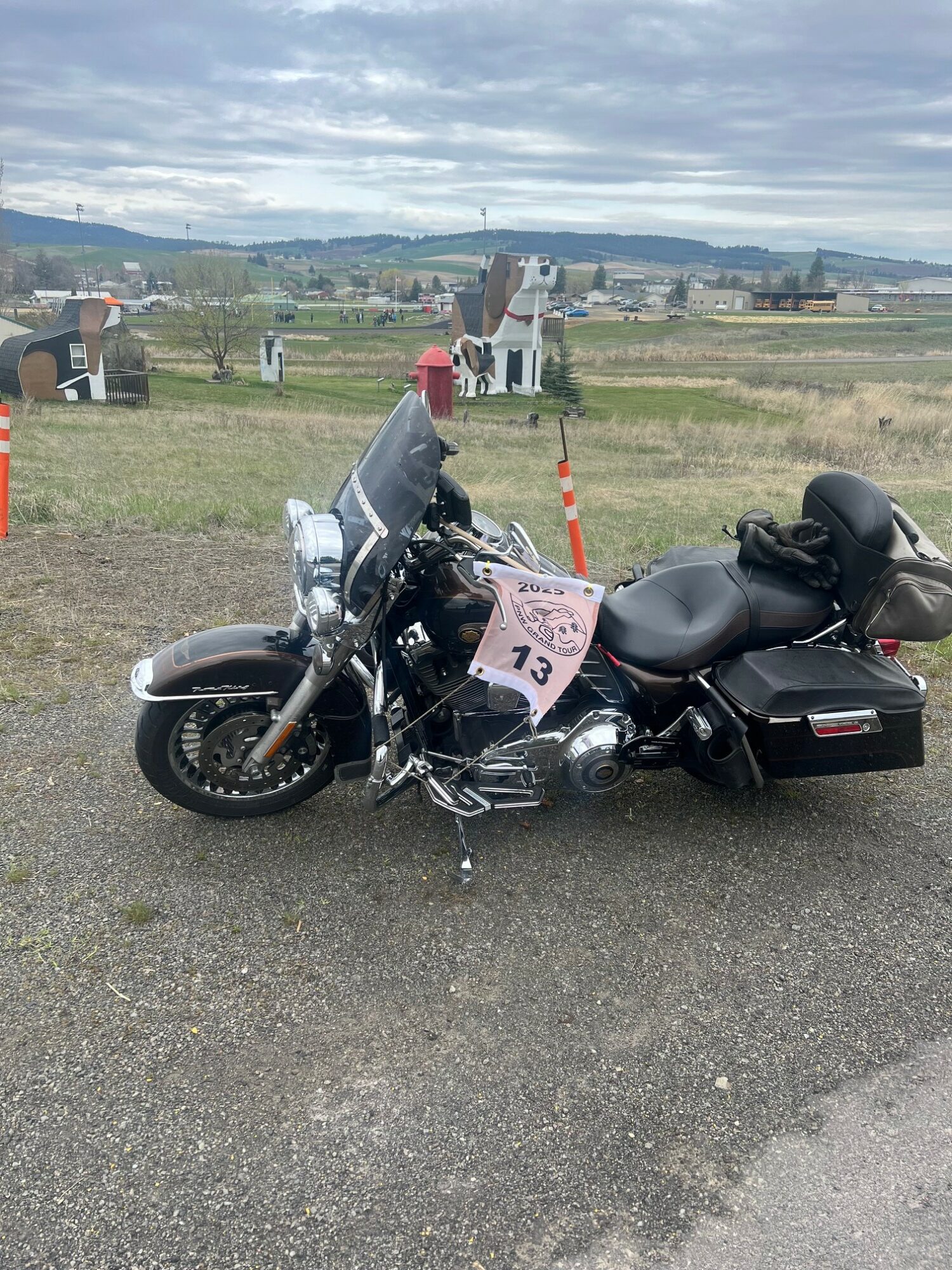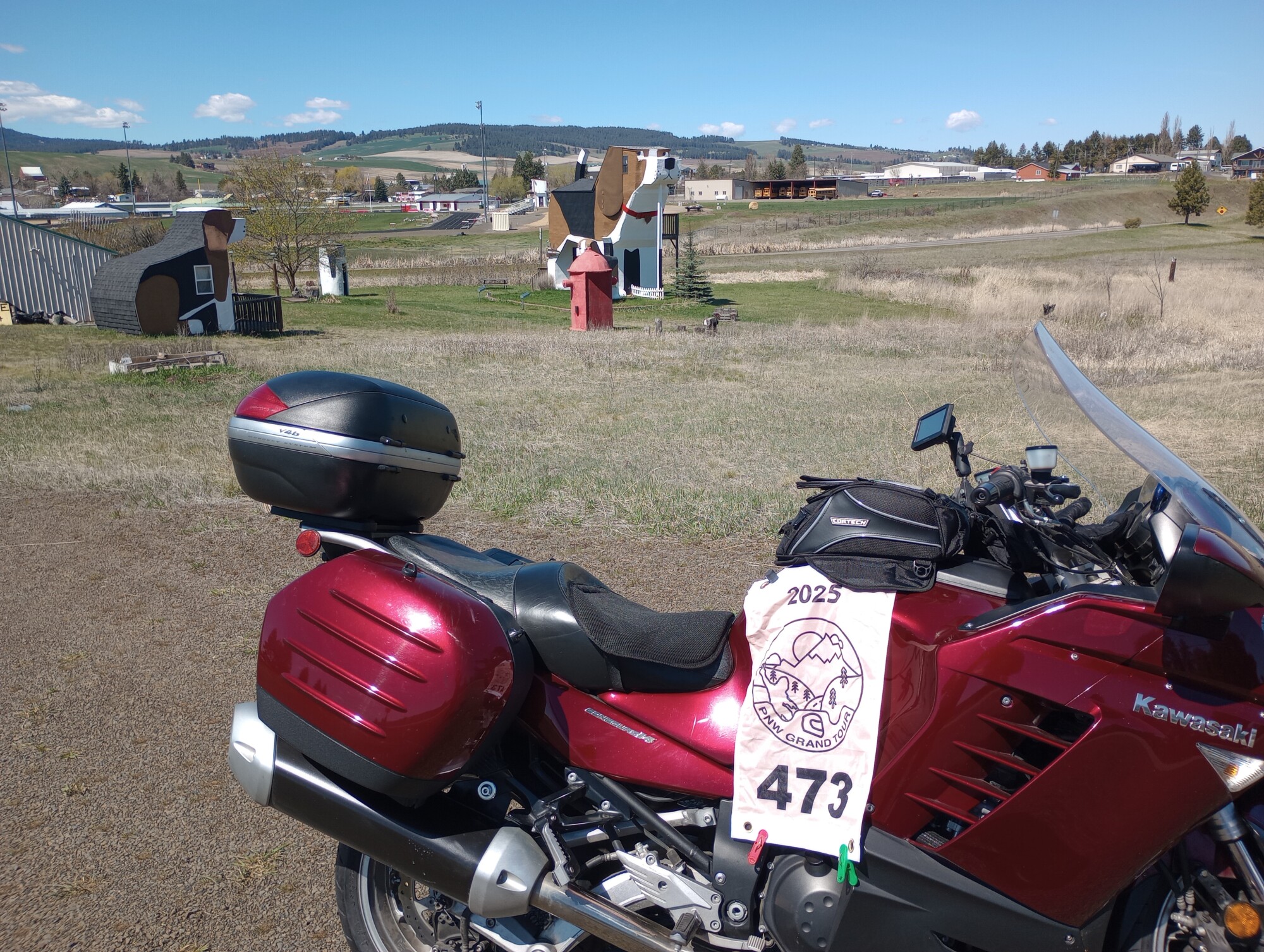 Take a picture of the giant dog at Dog Bark Park Inn with your bike and flag in the picture.