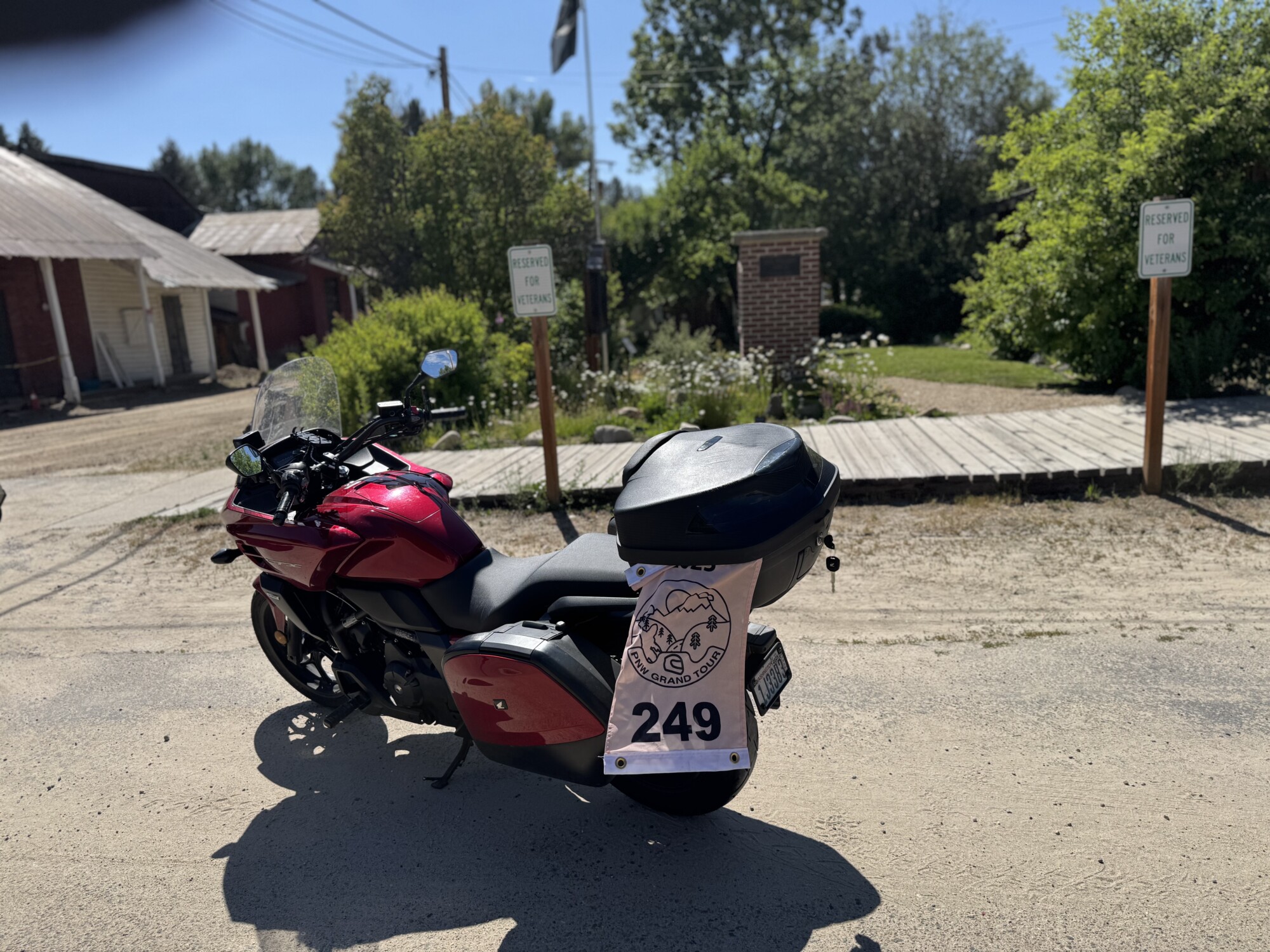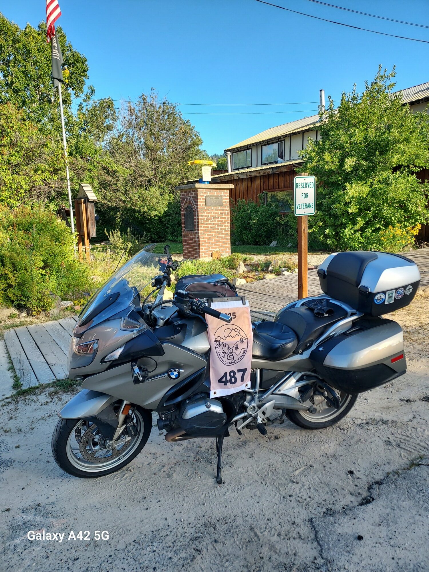 Take a picture of veterans memorial in Idaho City with your bike and flag in the picture.