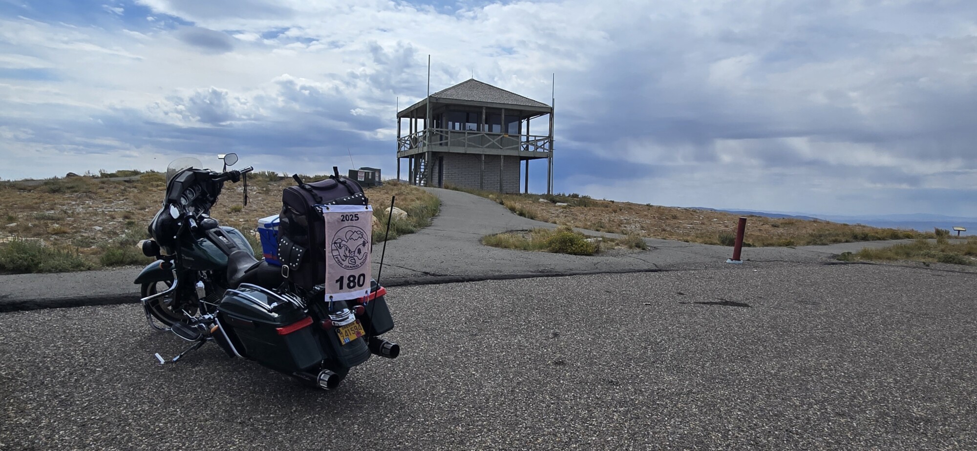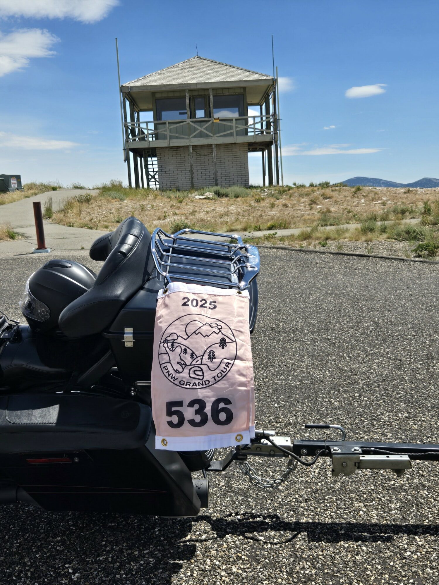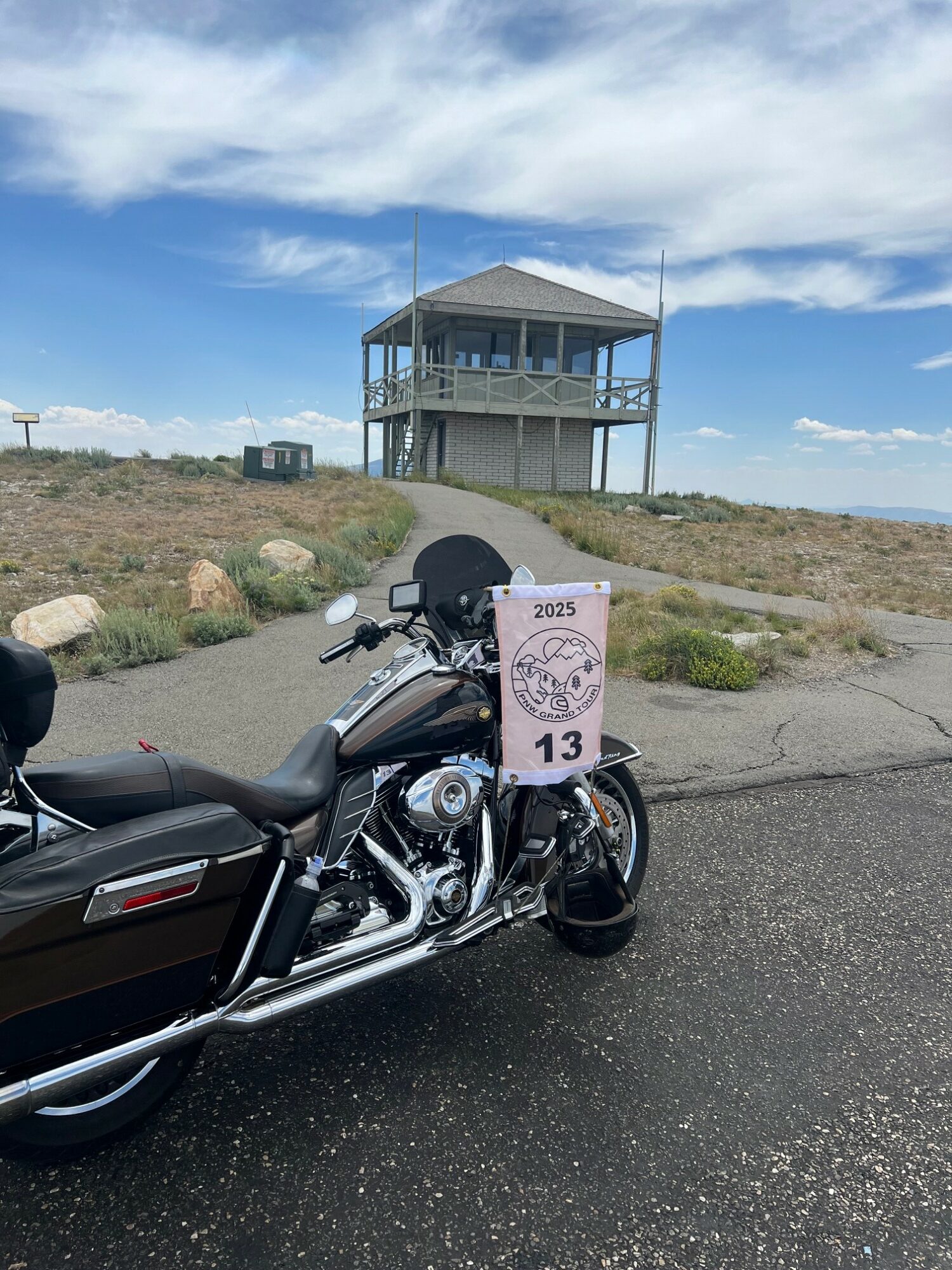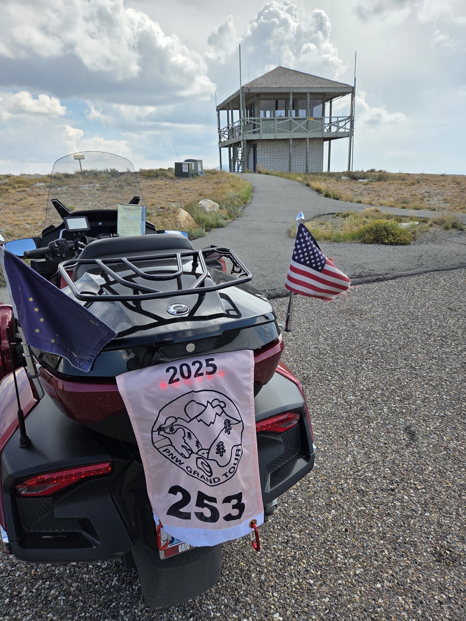 Take a picture of the Lookout tower at the Mount Harrison Lookout with your bike and flag in the picture.