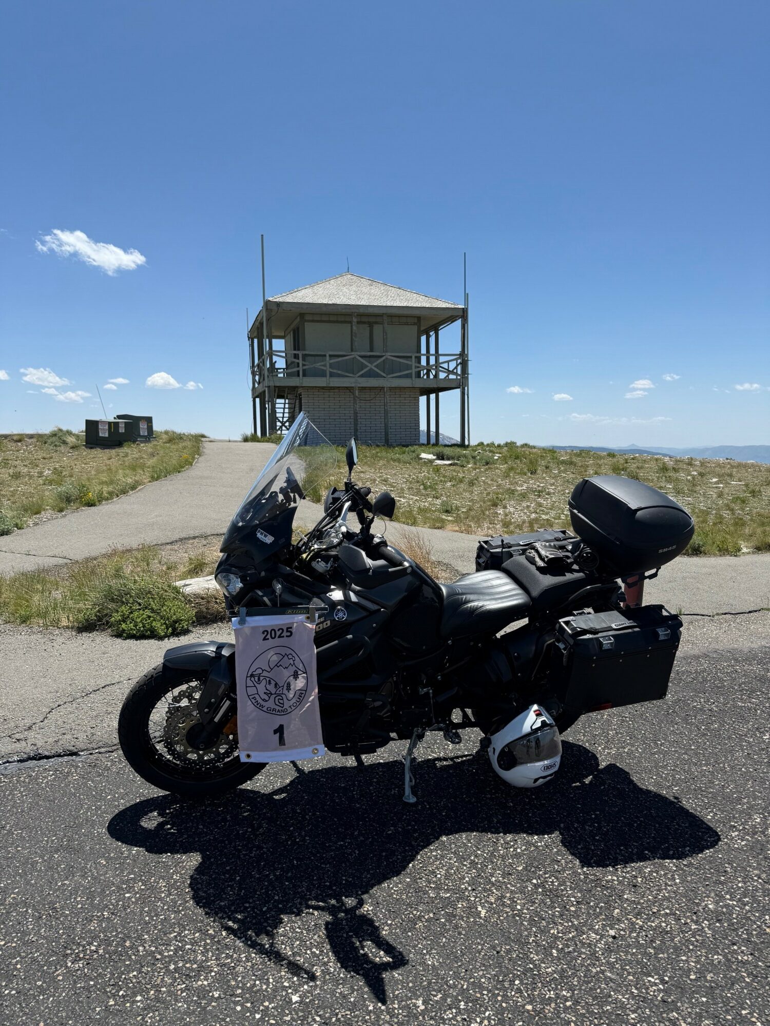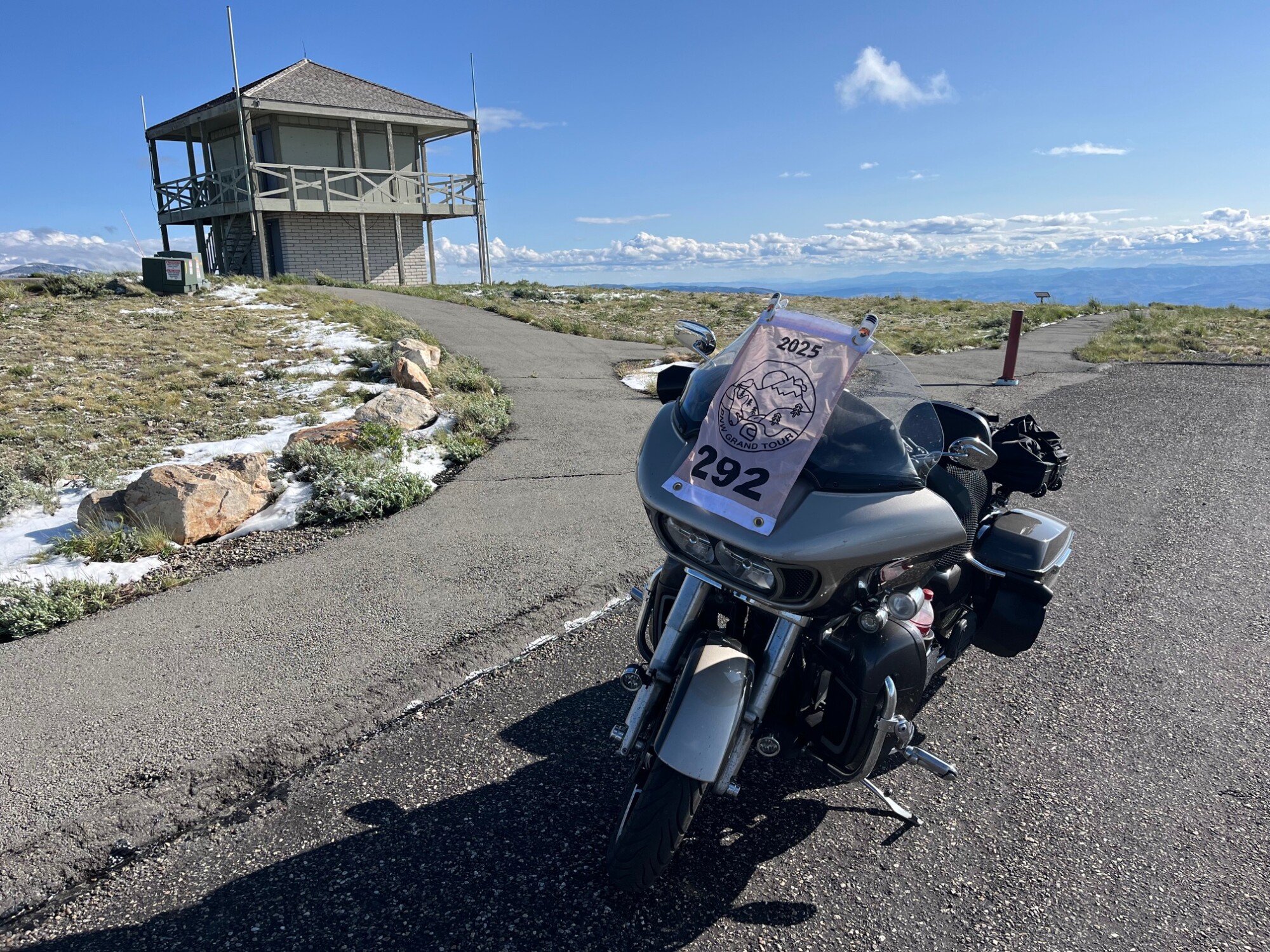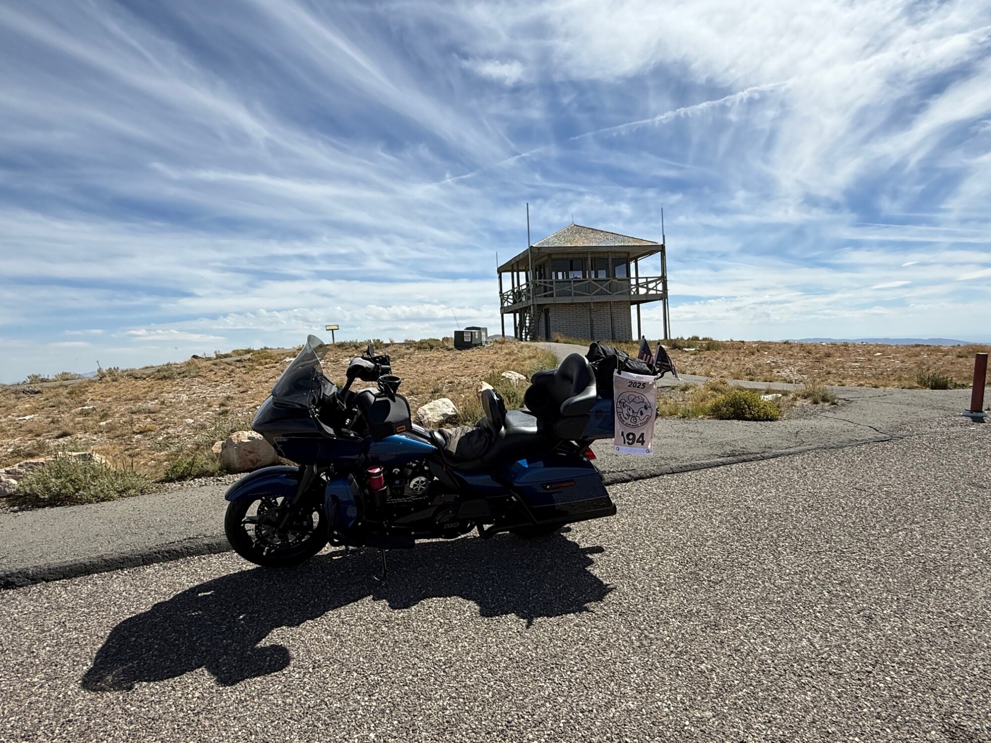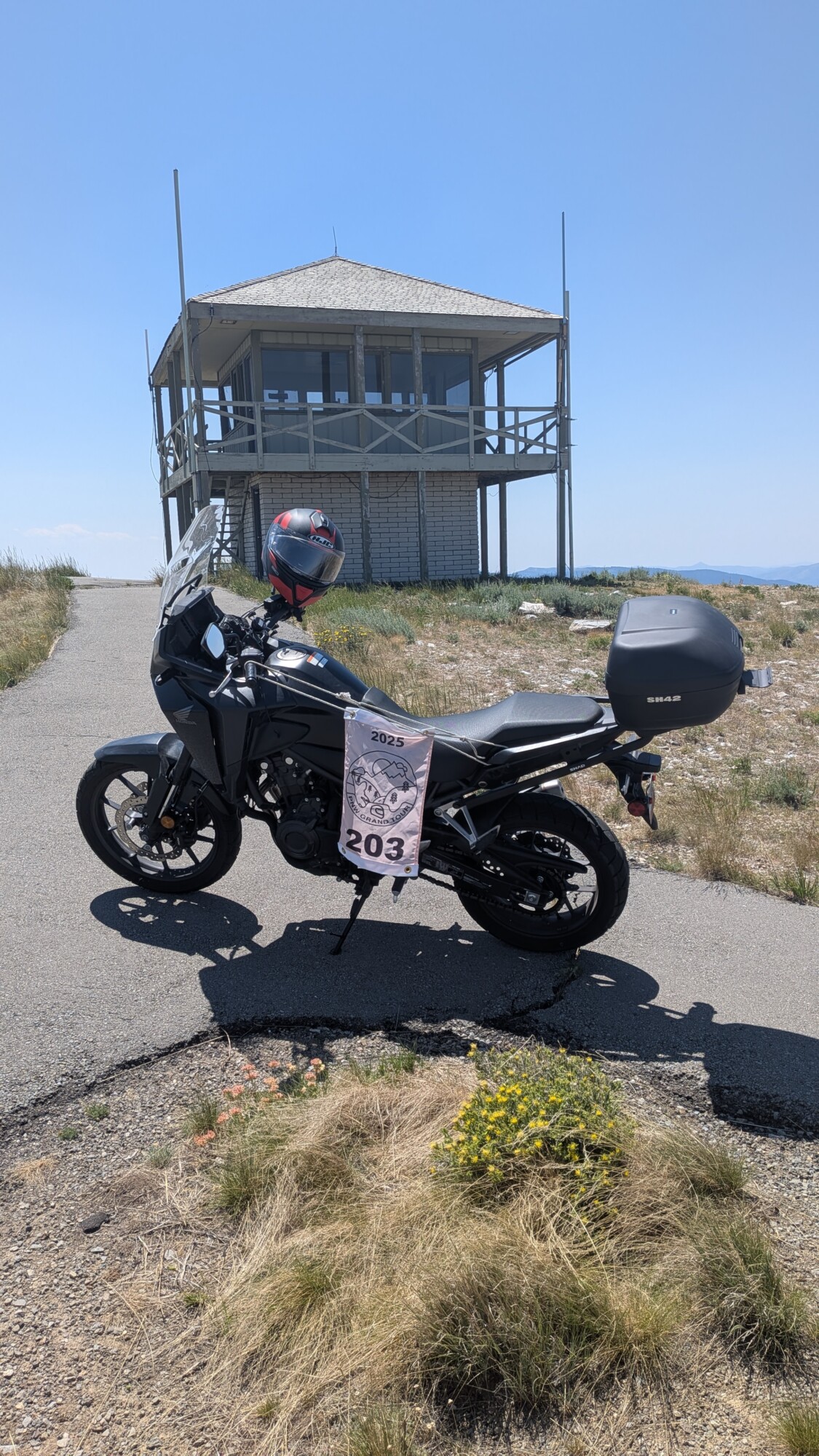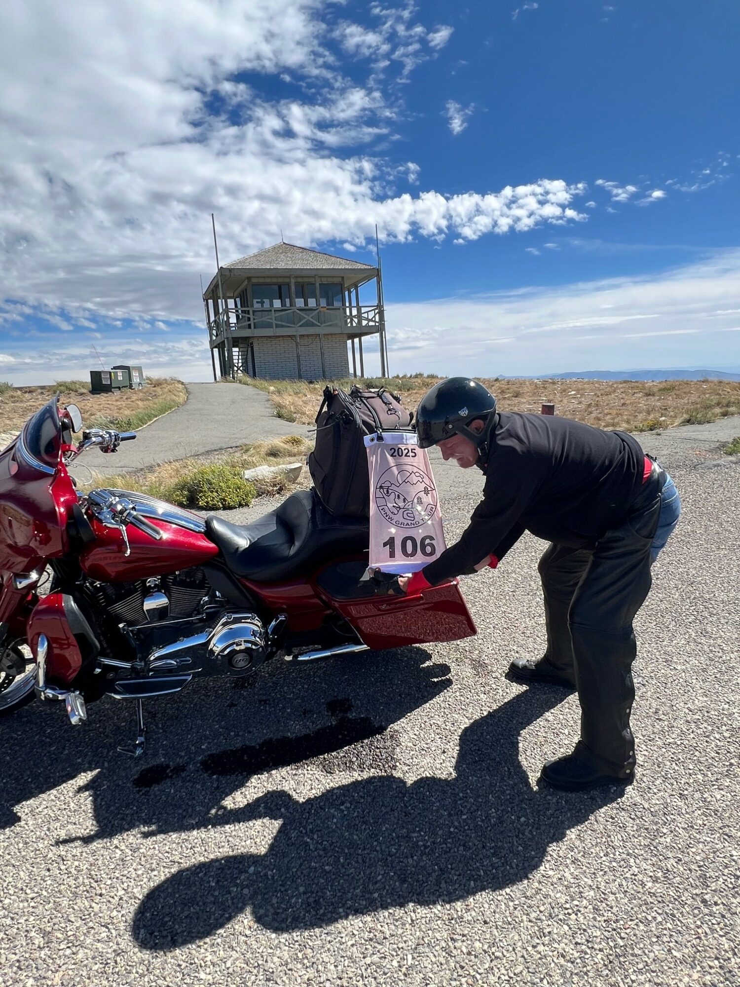 Take a picture of the Lookout tower at the Mount Harrison Lookout with your bike and flag in the picture.