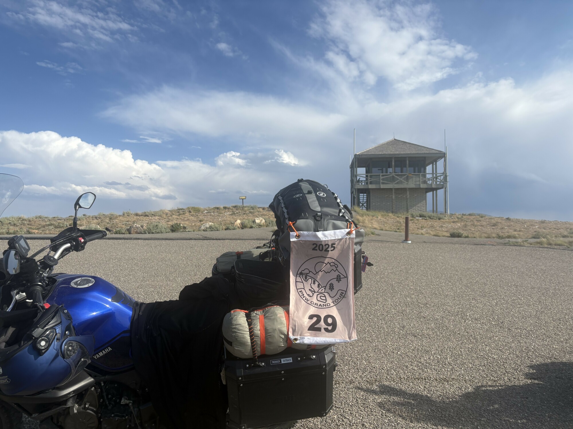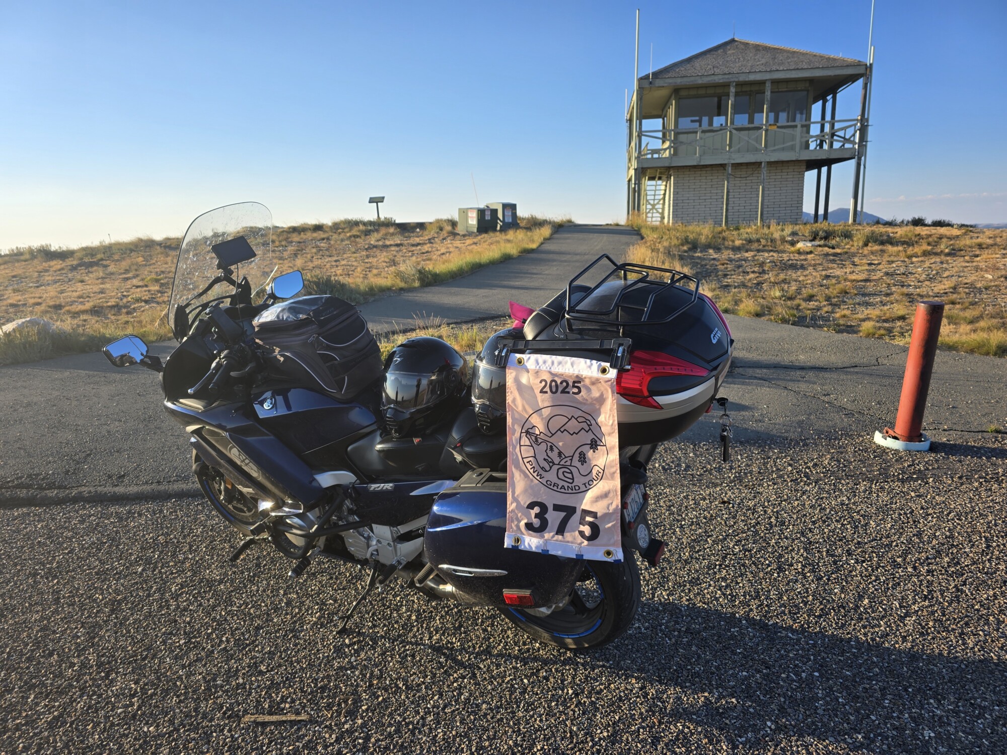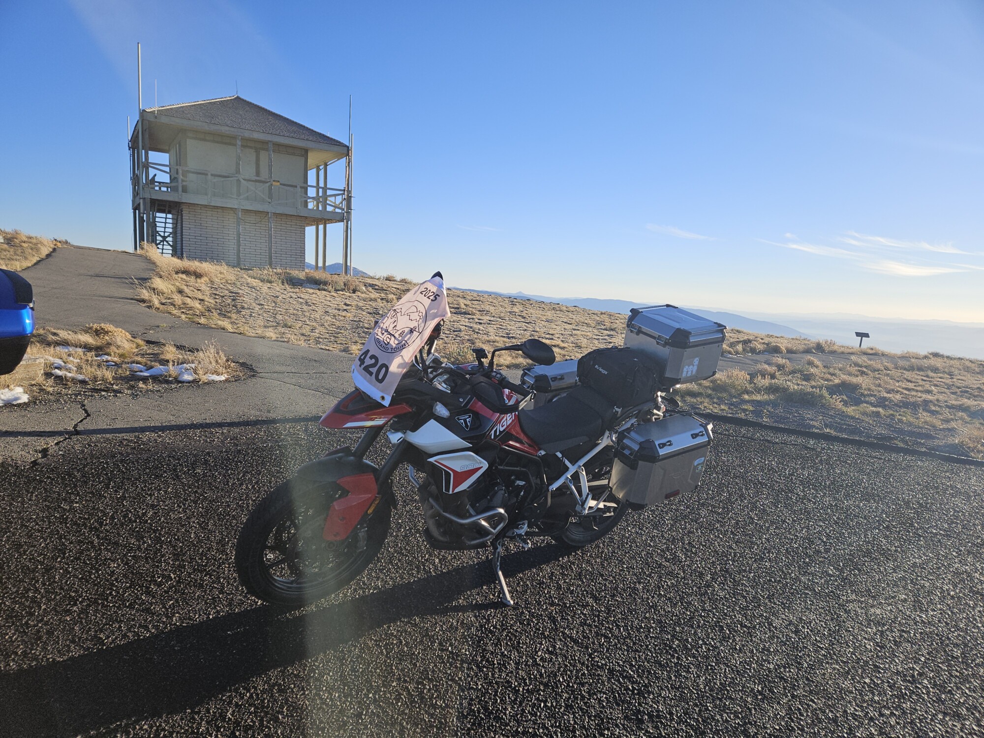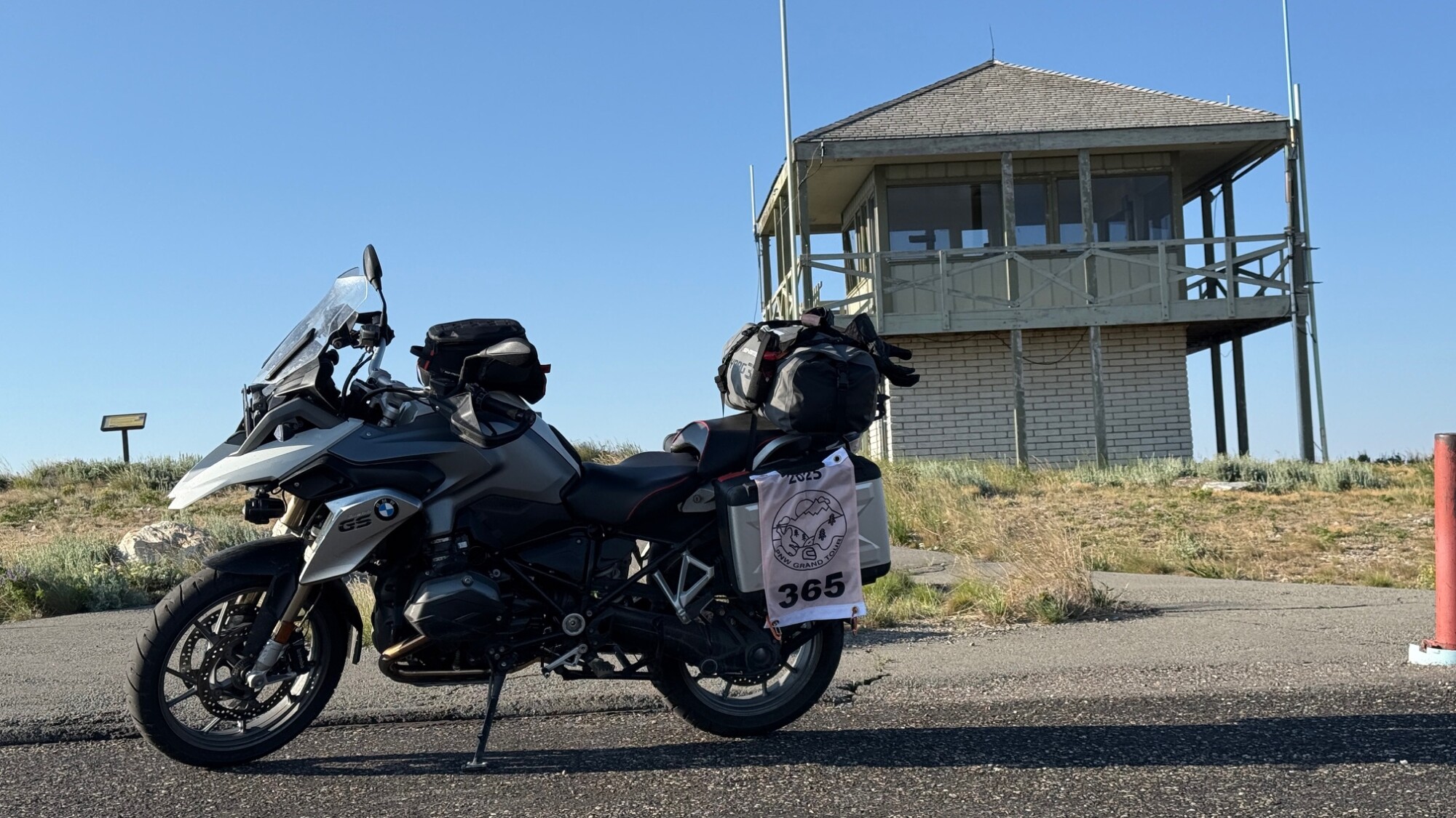 Take a picture of the Lookout tower at the Mount Harrison Lookout with your bike and flag in the picture.