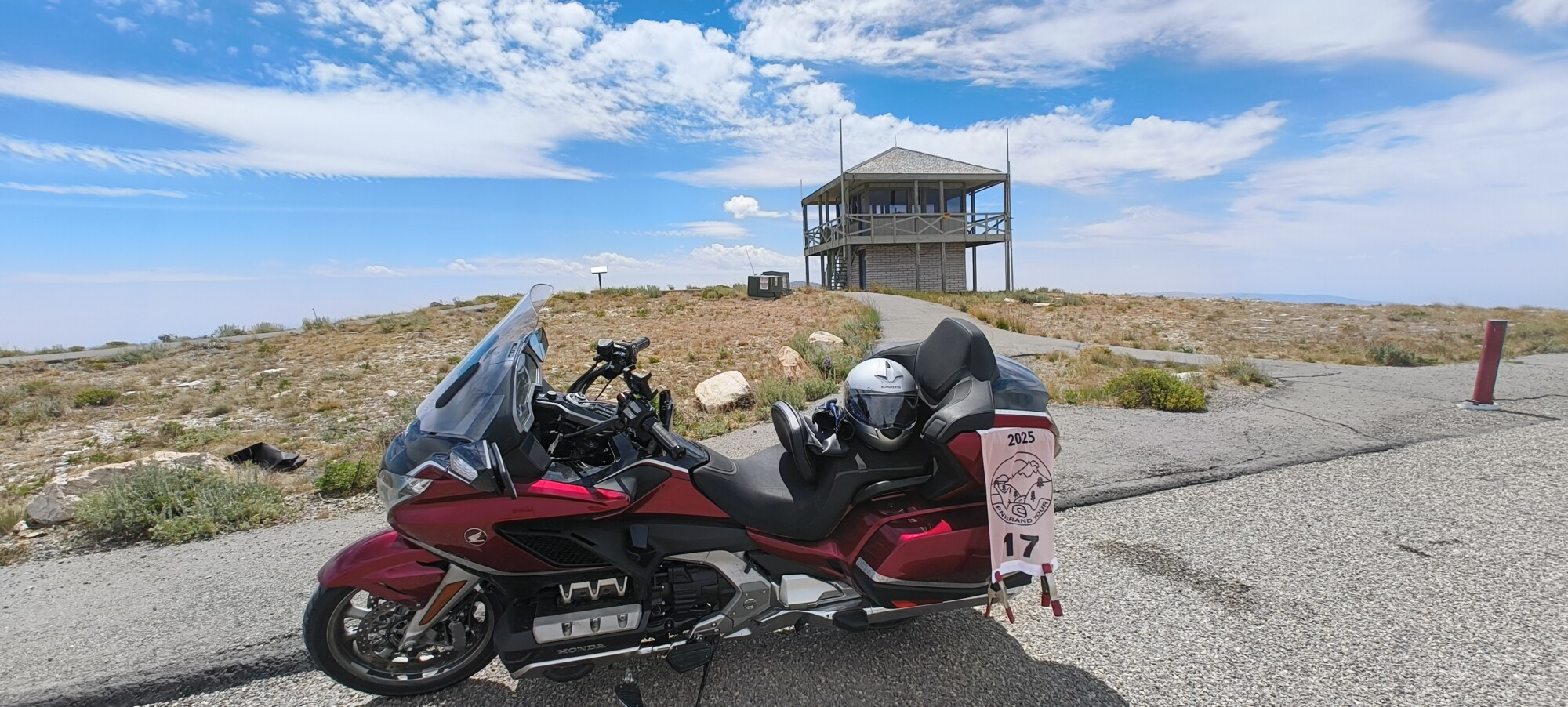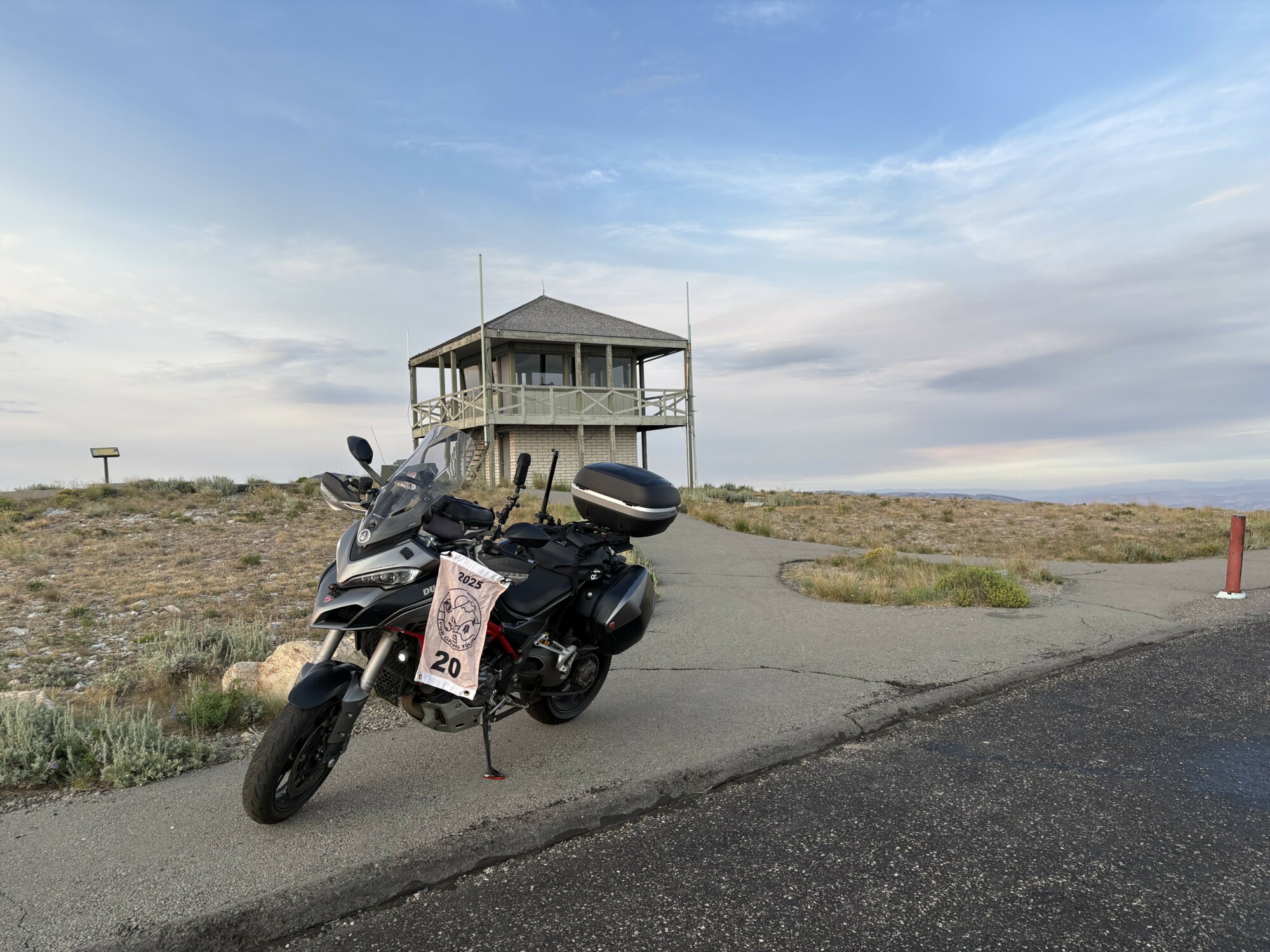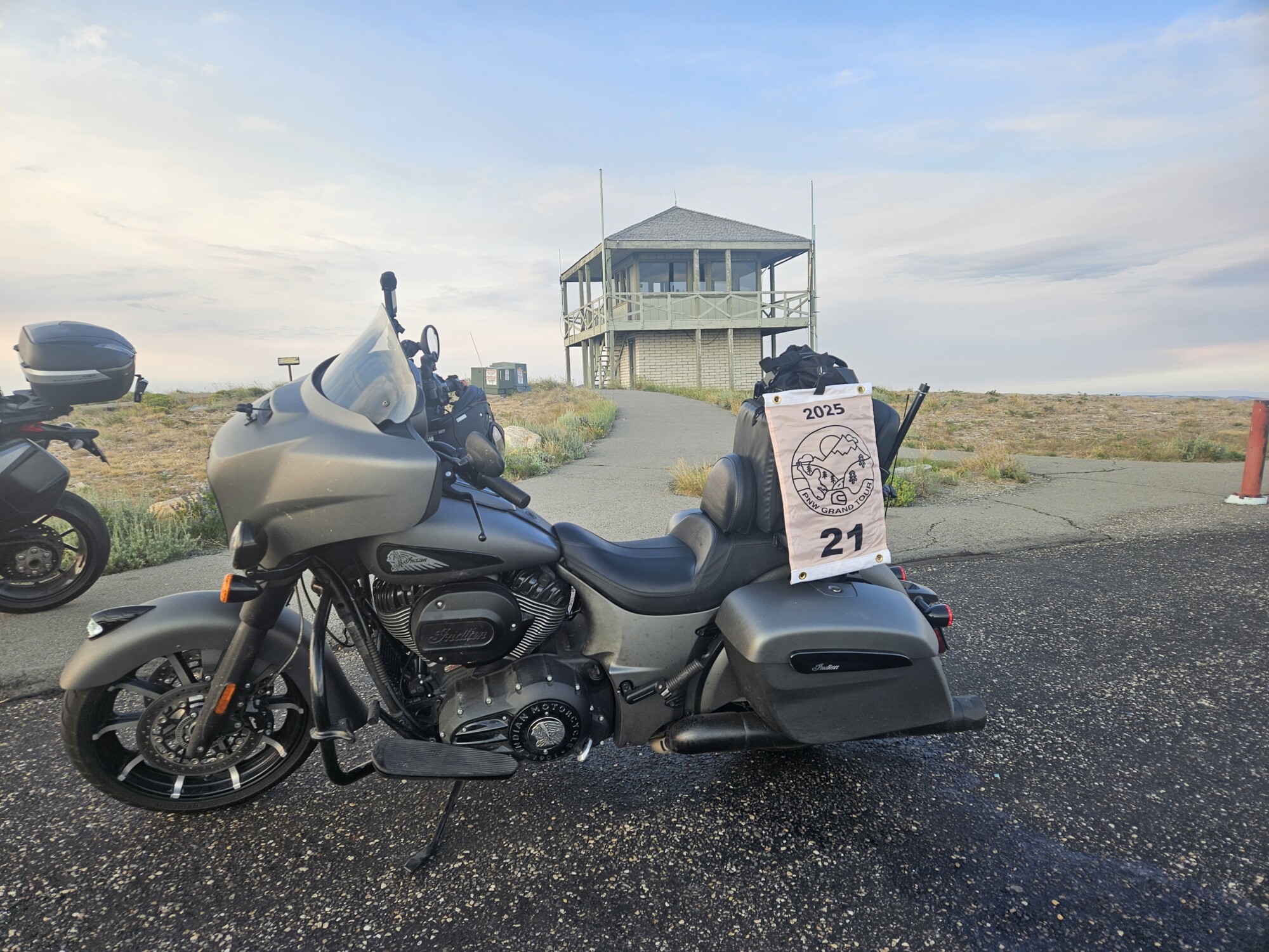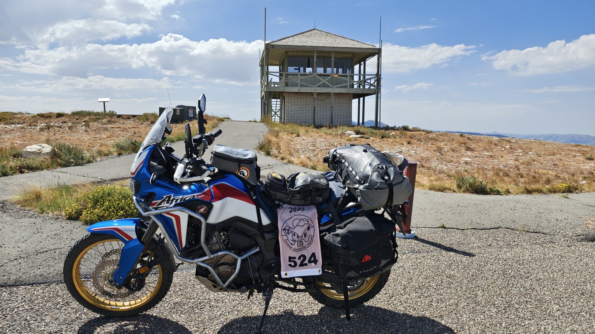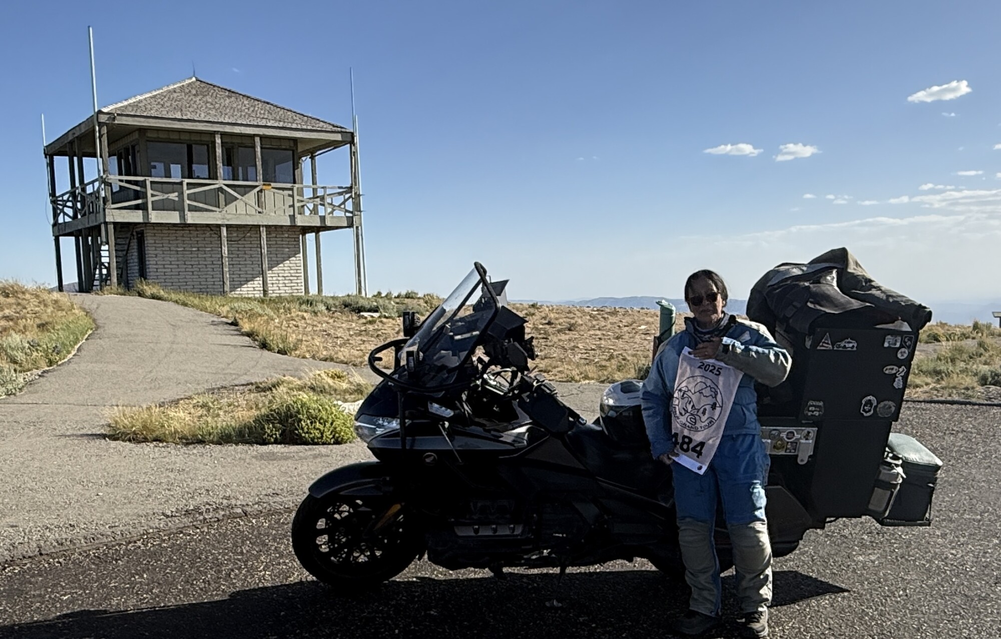 Take a picture of the Lookout tower at the Mount Harrison Lookout with your bike and flag in the picture.