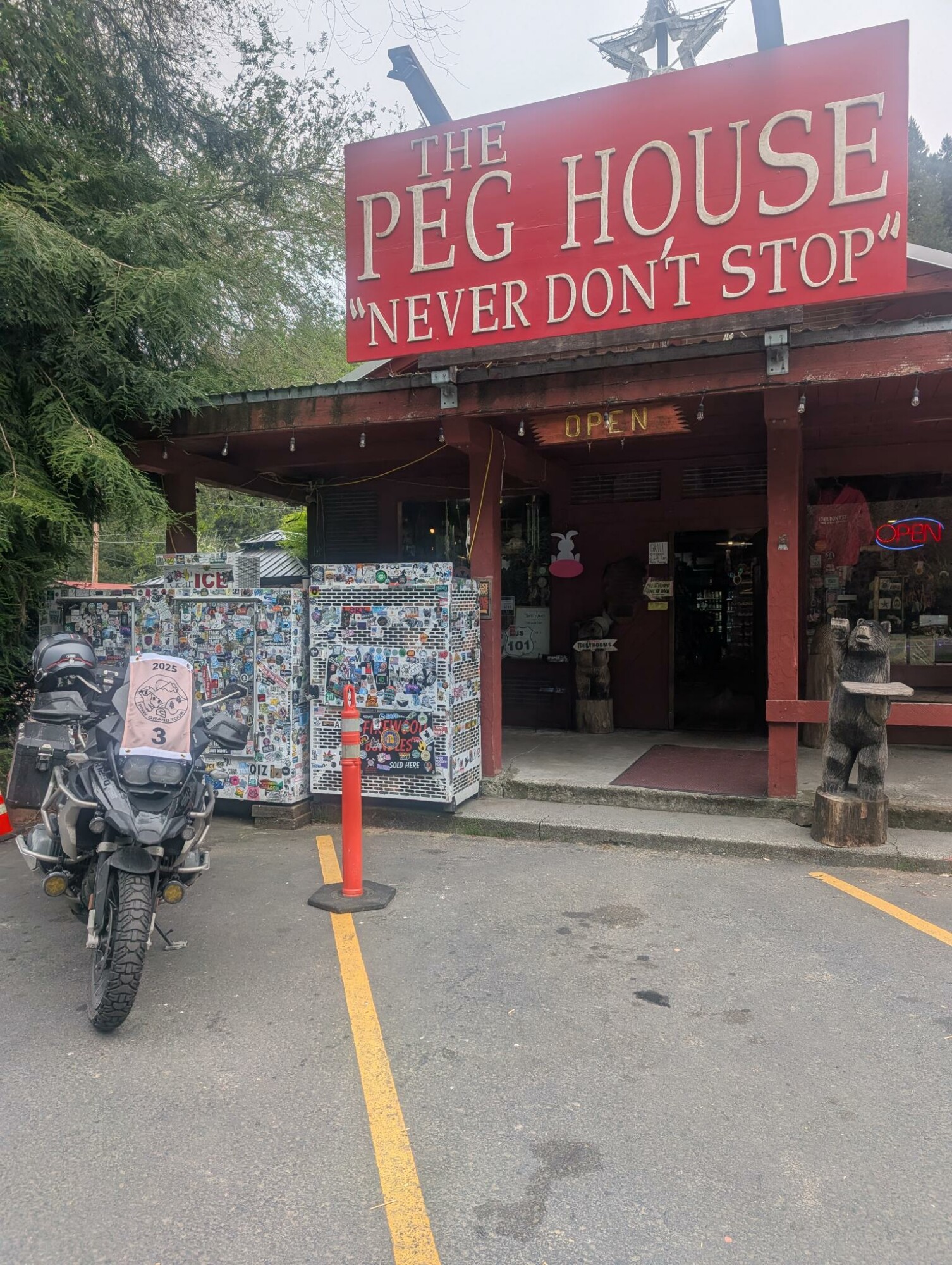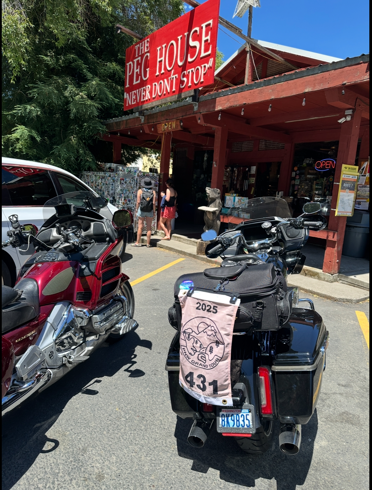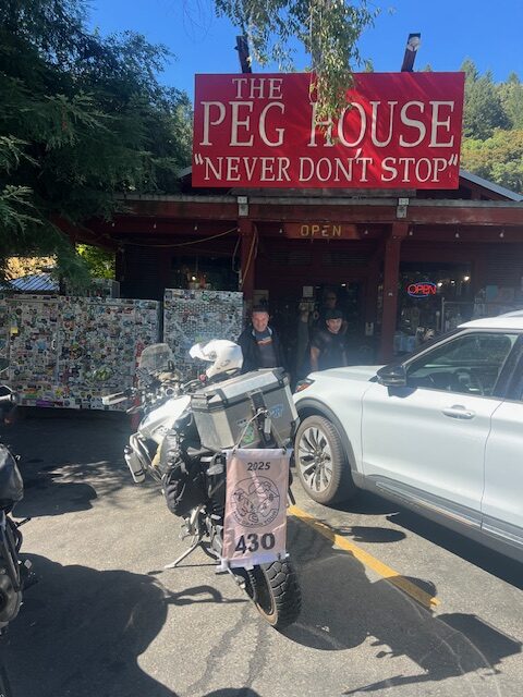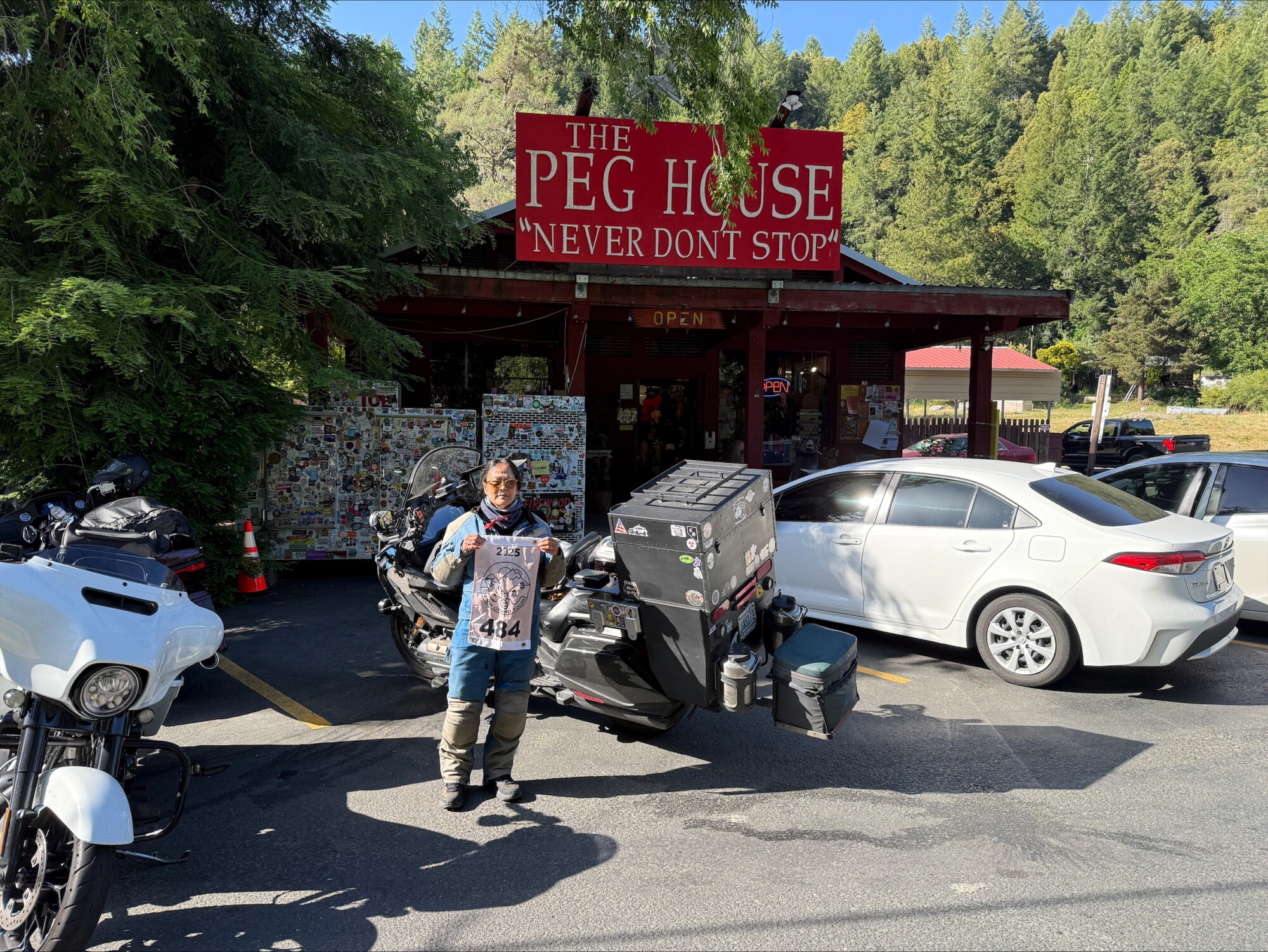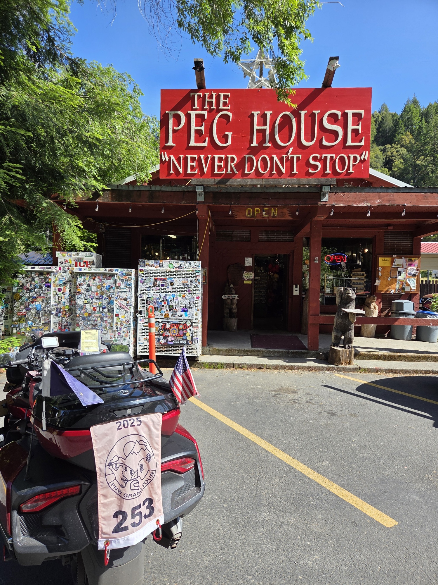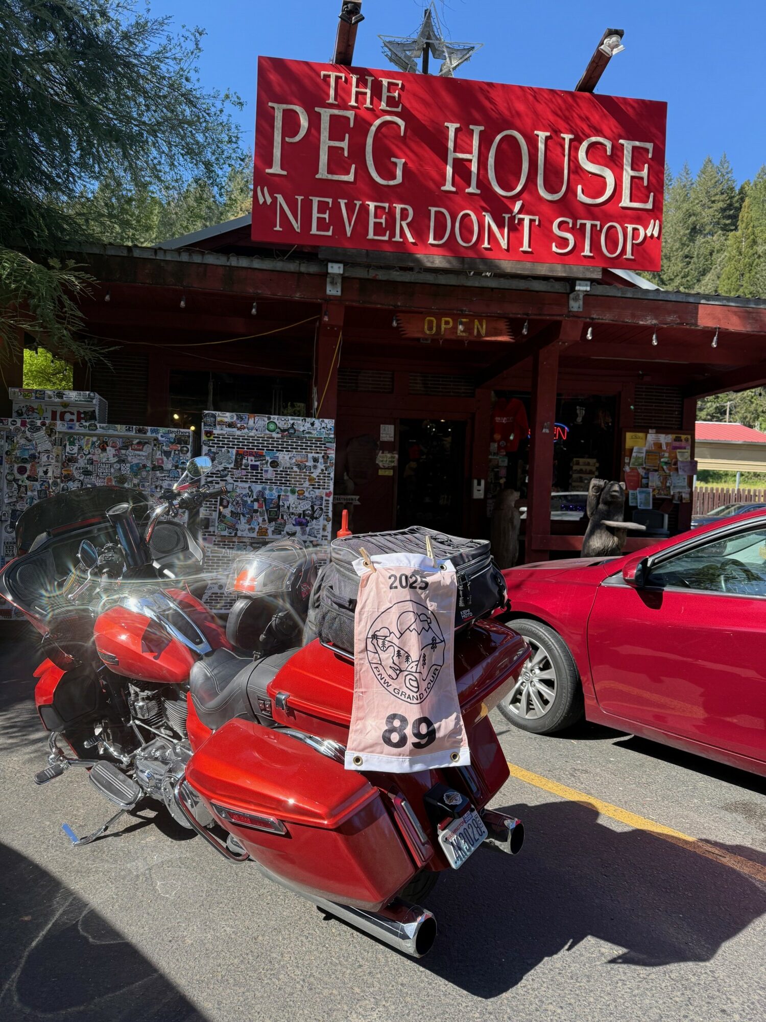 Take a picture of the Peg House sign with your bike and flag in the picture.