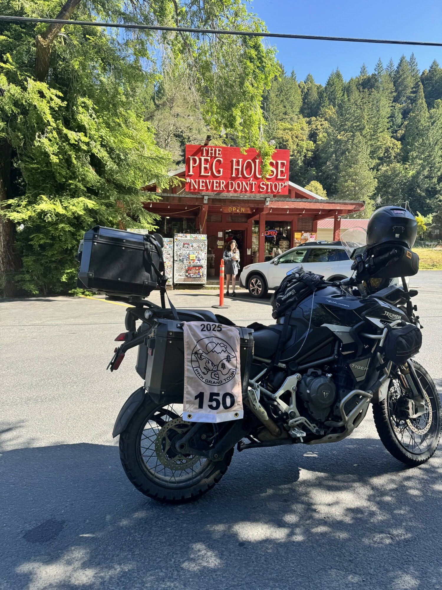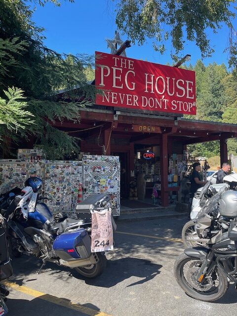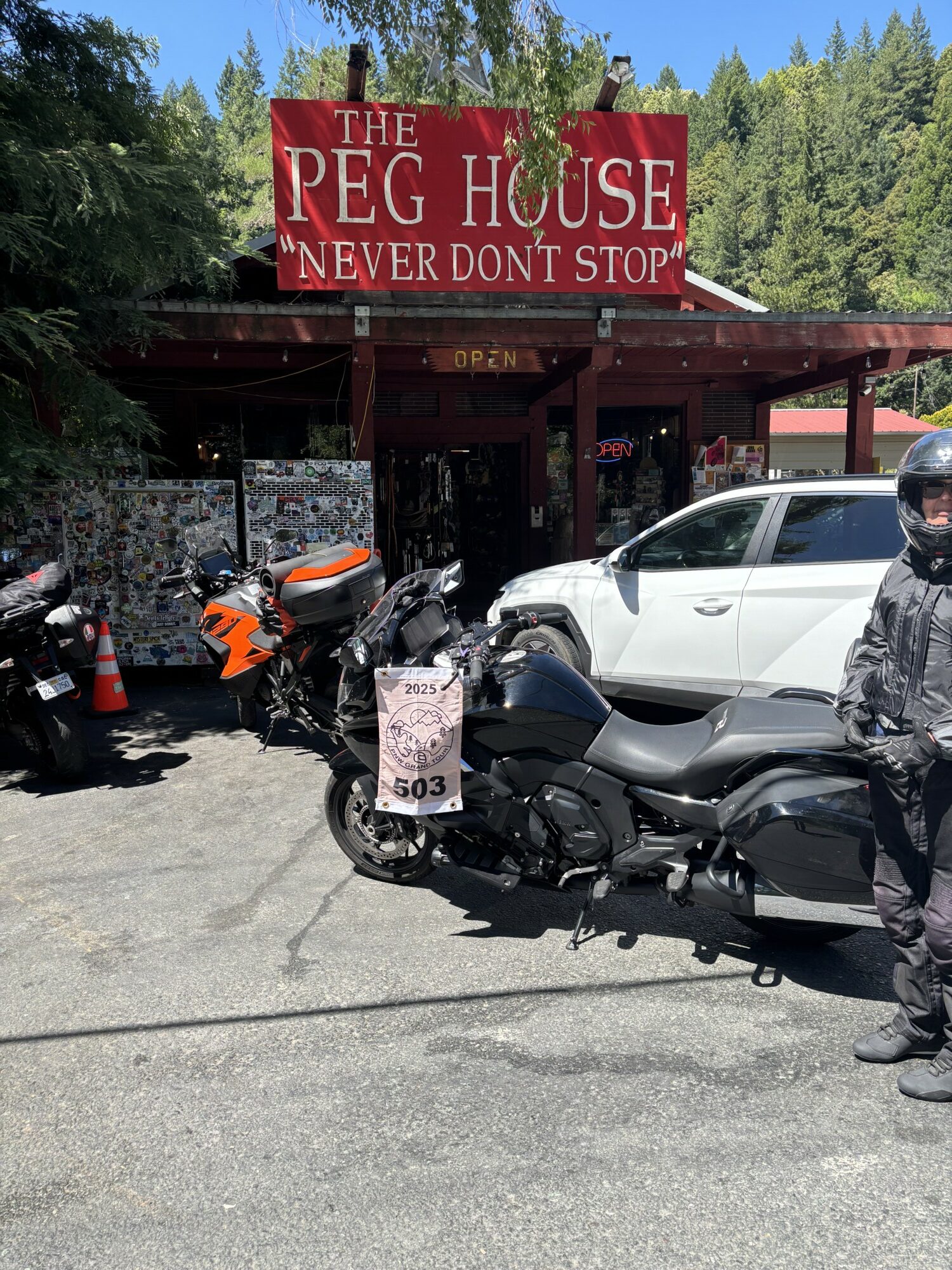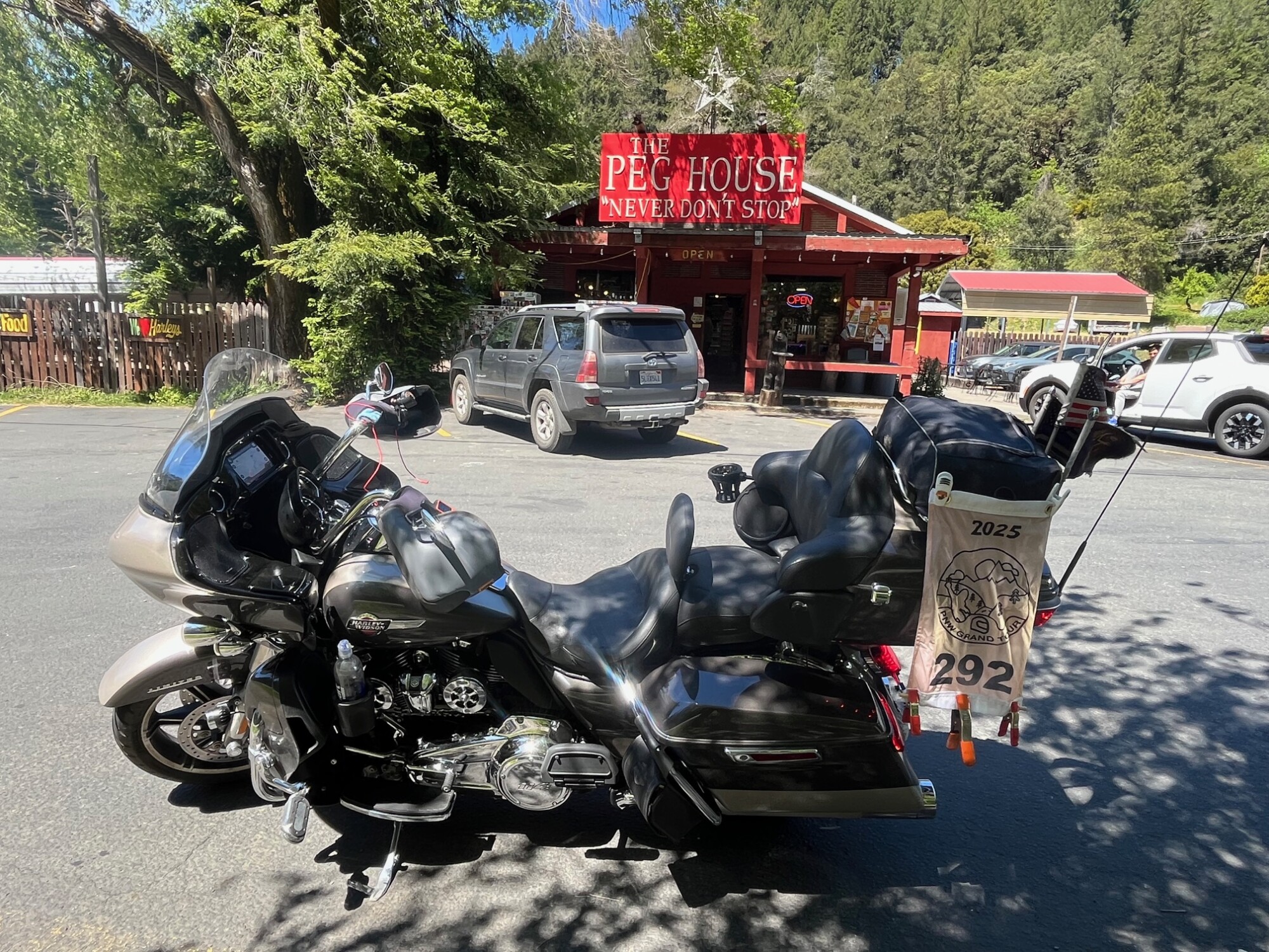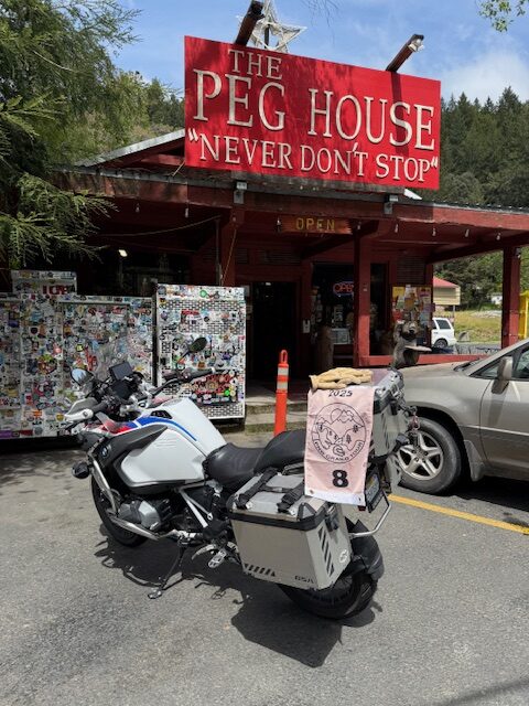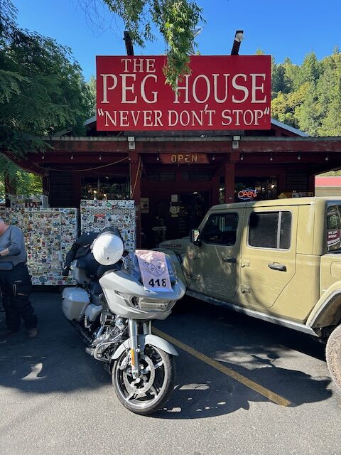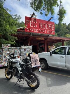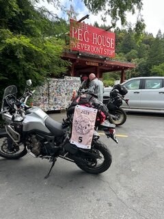 Take a picture of the Peg House sign with your bike and flag in the picture.