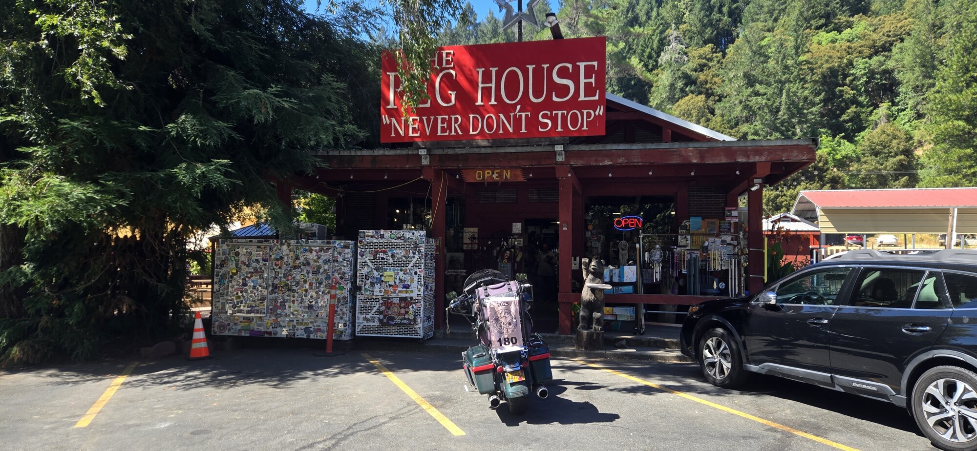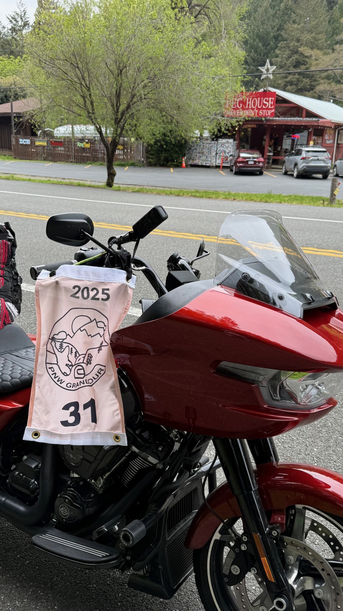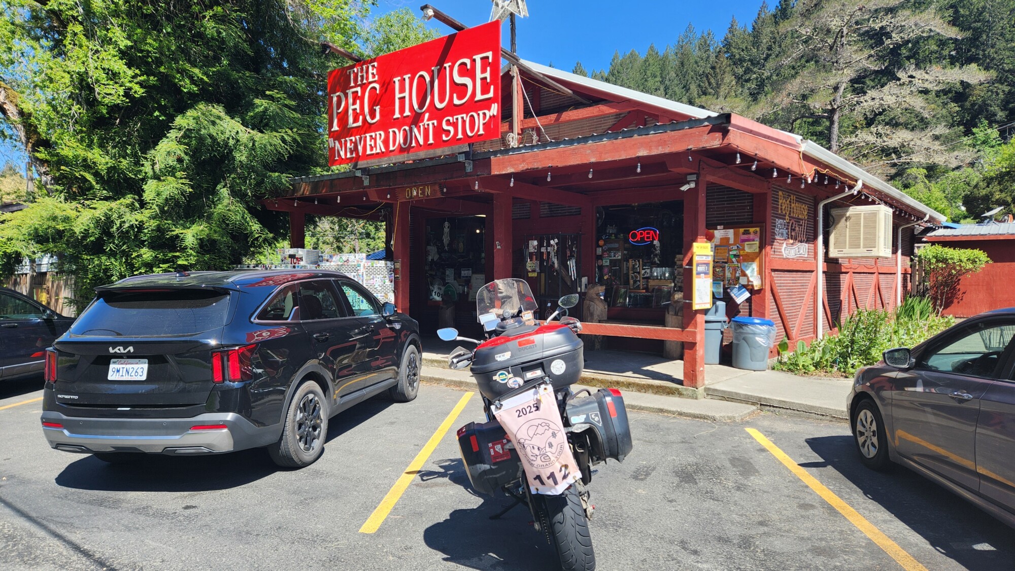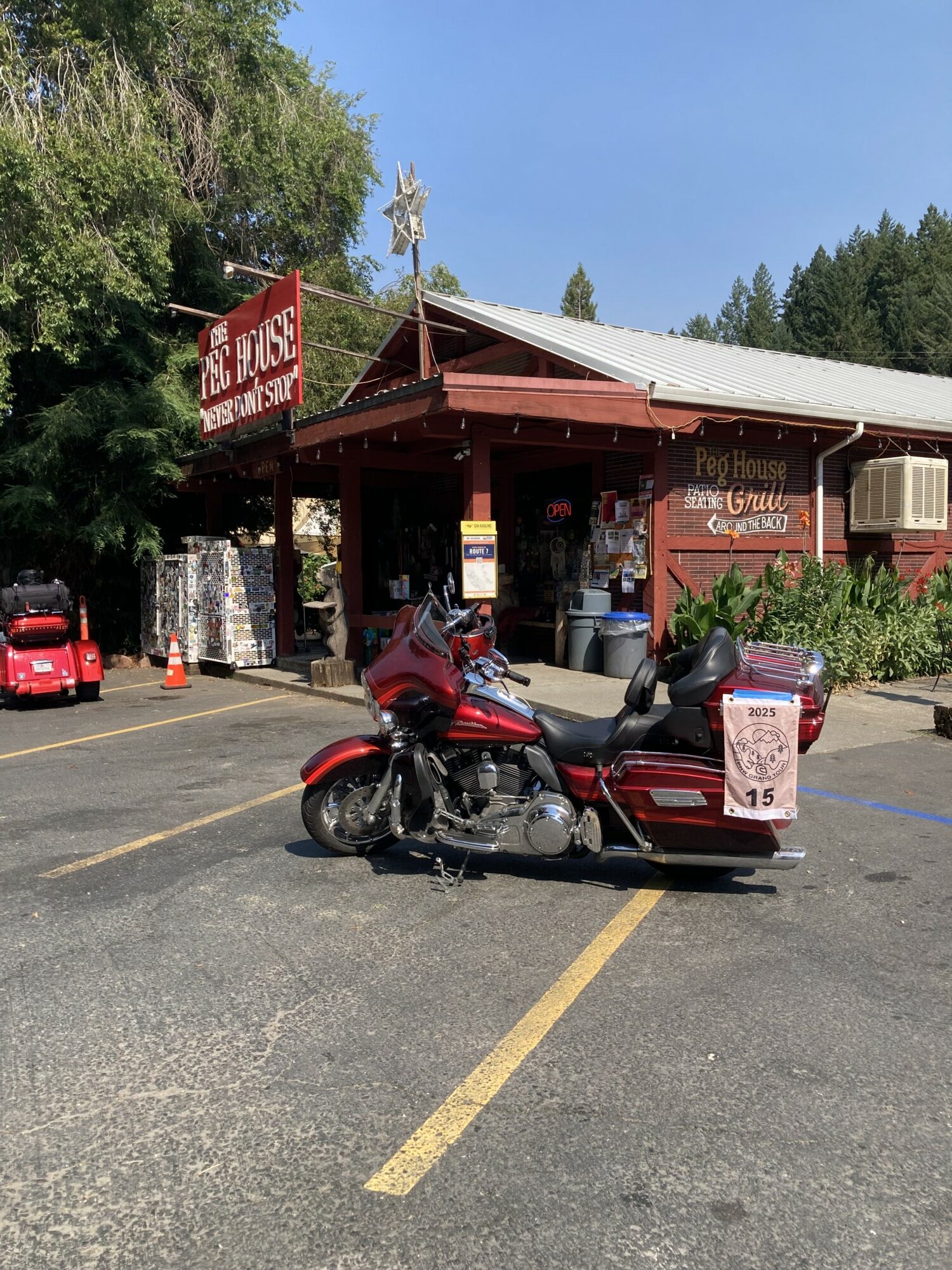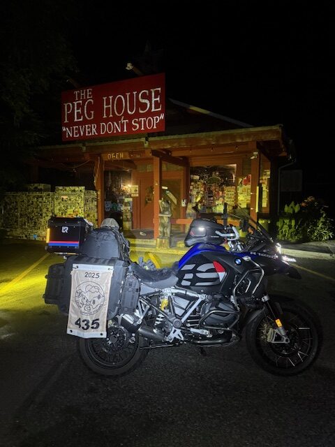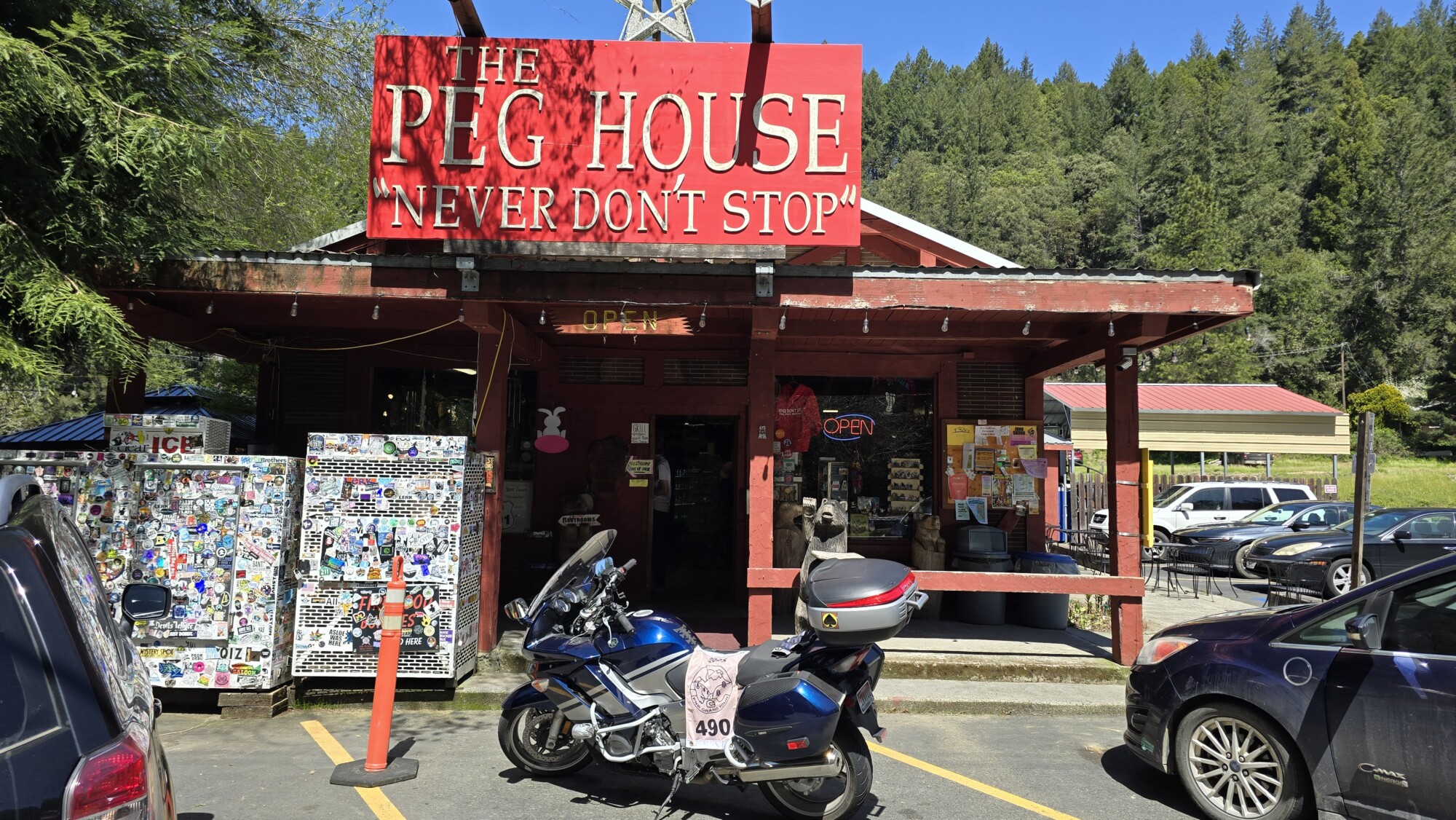 Take a picture of the Peg House sign with your bike and flag in the picture.